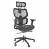 Fotel obrotowy, tapicerka: siatka, stelaż: tworzywo, kolor: czarny / czarny. Multiblock, regulowane: podłokietniki 4D, zagłówek, odcinek lędźwiowy.