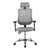 Fotel obrotowy ergonomiczny, spełnia wymogi BHP dotyczące krzeseł biurowych zgodnie z rozporządzeniem Dz. U. poz.2367. Model posiada pozytywną ocenę fizjologiczno-ergonomiczną wydaną przez Instytut Medycyny Pracy (szczegóły w zakładce „PLIKI DO POBRANIA”). Tapicerka: siatka + tkanina membranowa, stelaż: metal, kolor: szary / srebrny. Multiblock, regulowane: podłokietniki, zagłówek, wysokość oparcia.