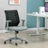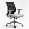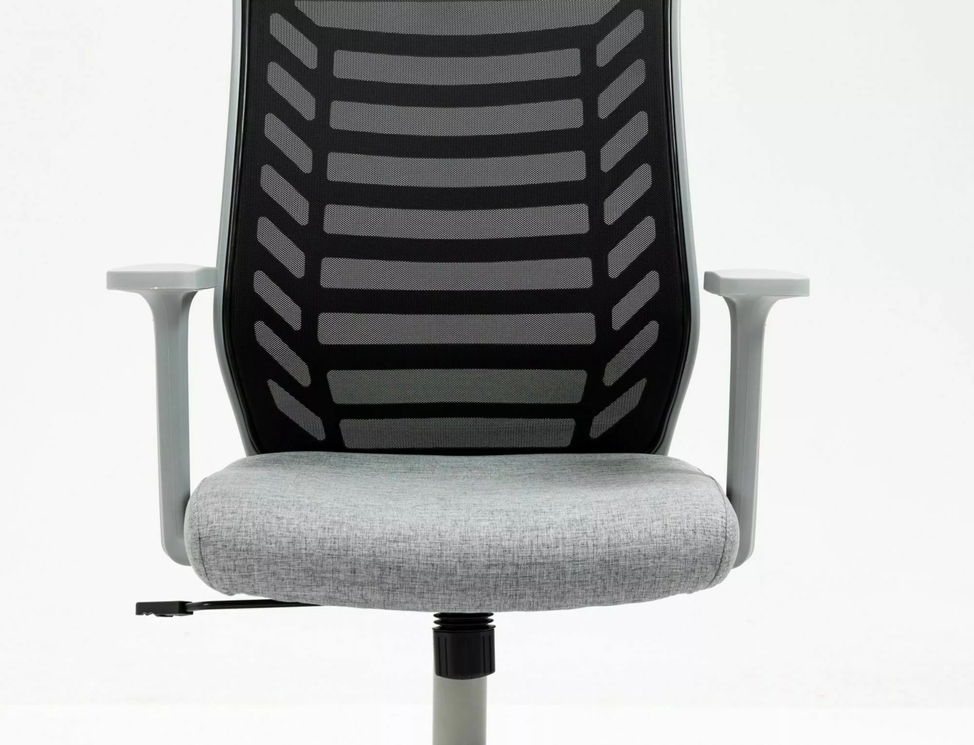 Fotel obrotowy, tkanina, kolor: szary / siatka, kolor: czarny, stelaż tworzywo, kolor: szary, mechanizm TILT, stałe podłokietniki.