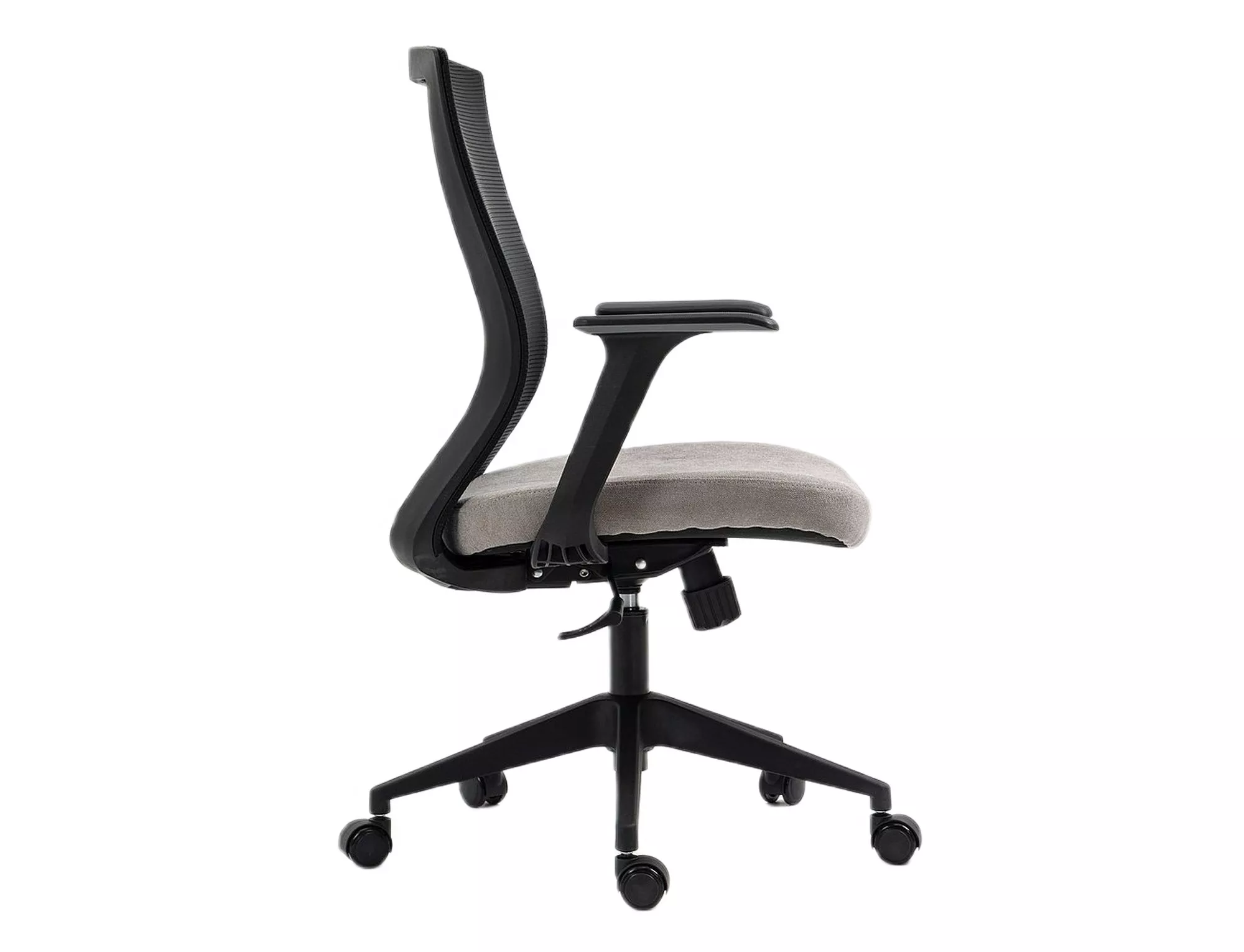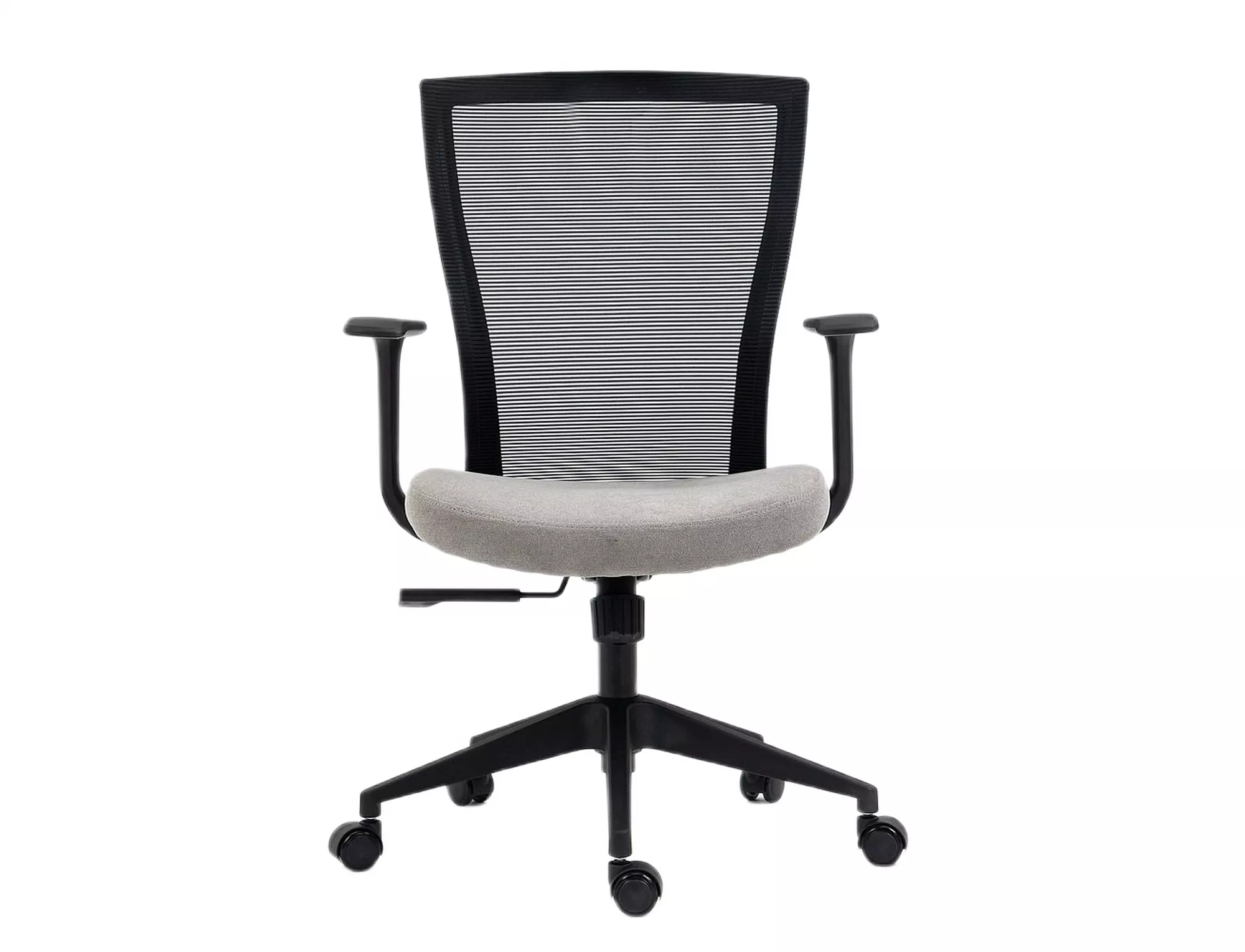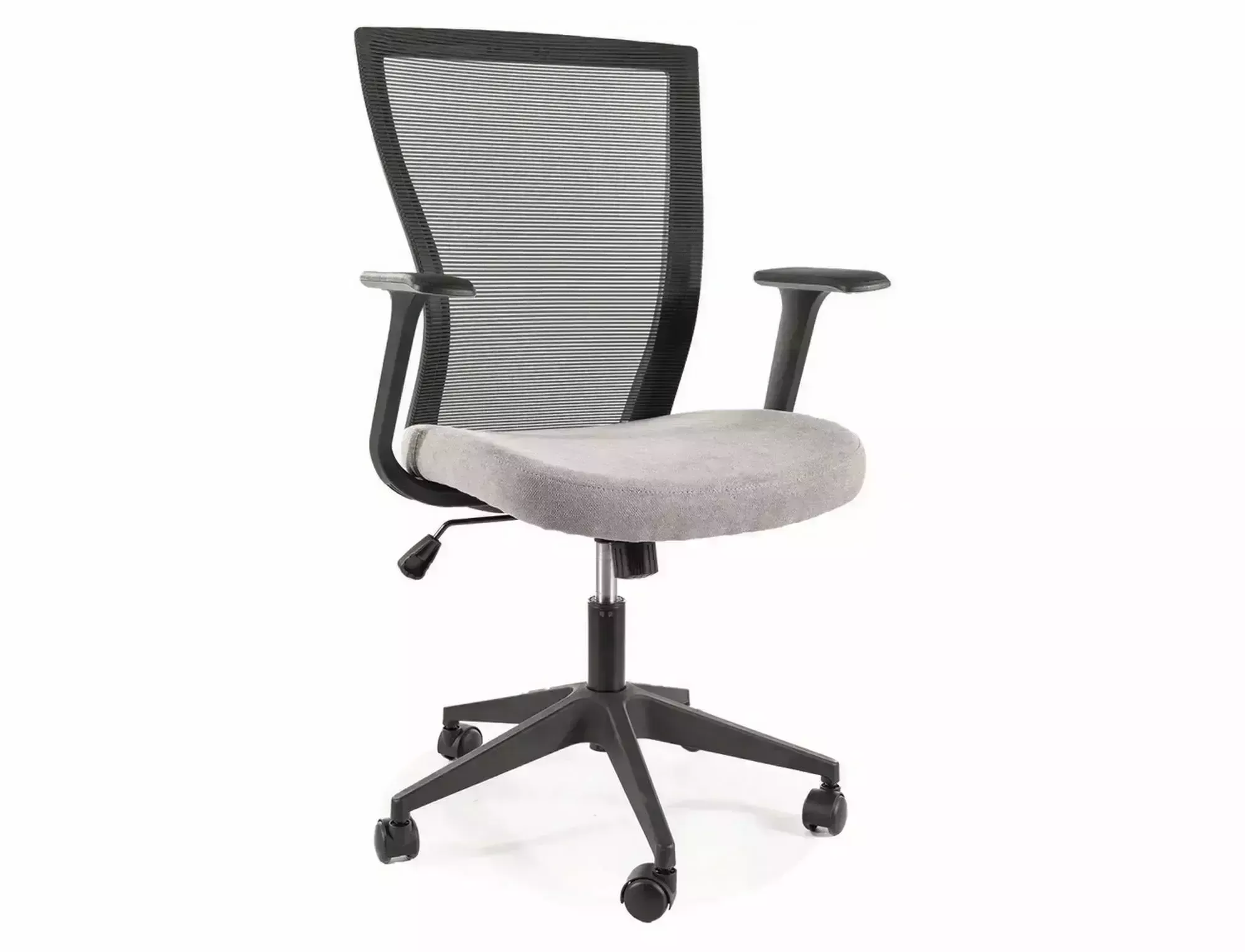 Fotel obrotowy, tkanina / siatka, kolor: szary / czarny, stelaż tworzywo, kolor: czarny, mechanizm TILT, stałe podłokietniki.