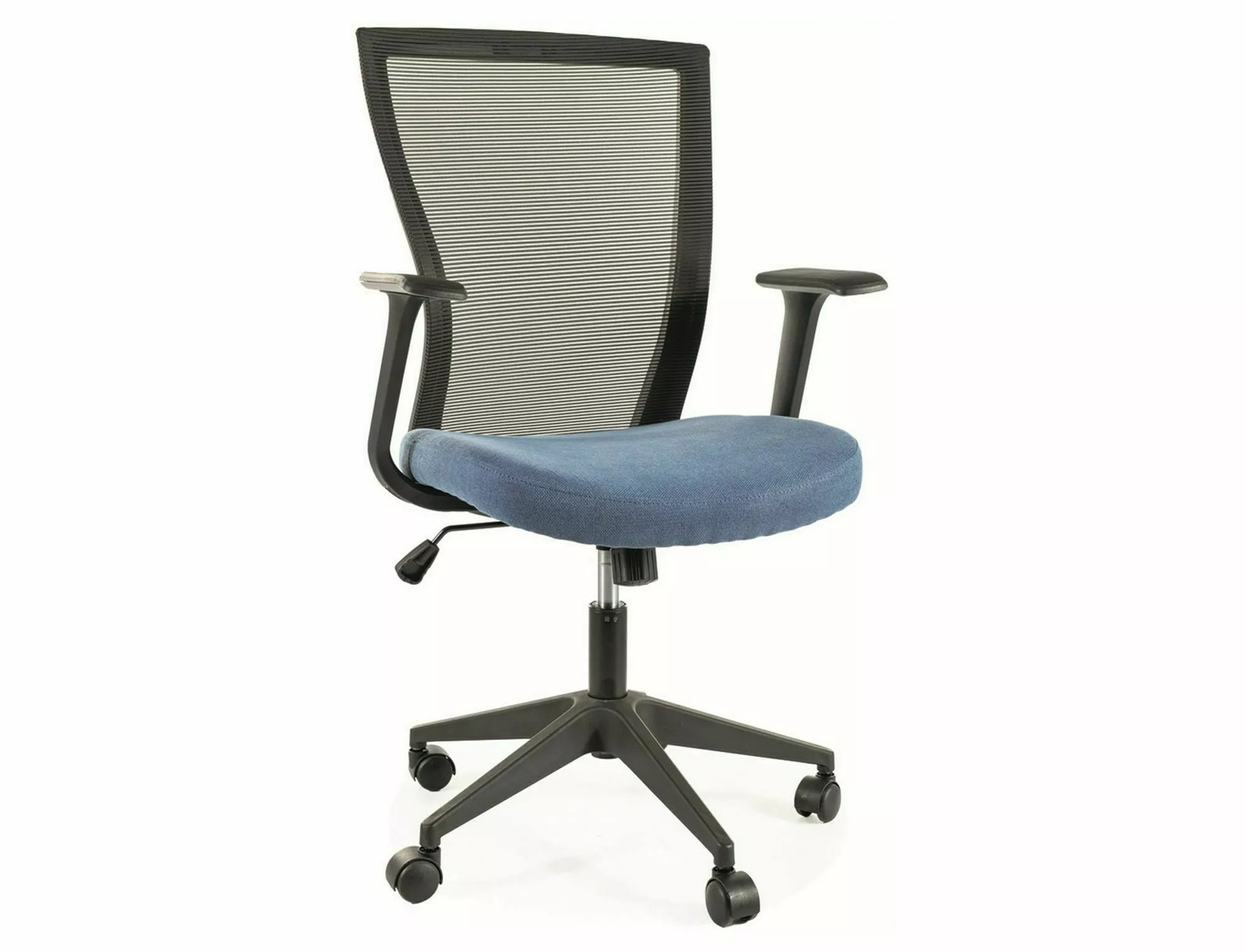 Fotel obrotowy, tkanina / siatka, kolor: niebieski / czarny, stelaż tworzywo, kolor: czarny, mechanizm TILT, stałe podłokietniki.