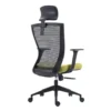 Fotel obrotowy, tkanina / siatka, kolor: zielony / czarny, stelaż tworzywo, kolor: czarny, multiblock, stałe podłokietniki, regulowany zagłówek.