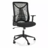 Fotel obrotowy, tapicerka: tkanina + siatka, stelaż: tworzywo, kolor: czarny. Mechanizm TILT, regulowane podłokietniki.