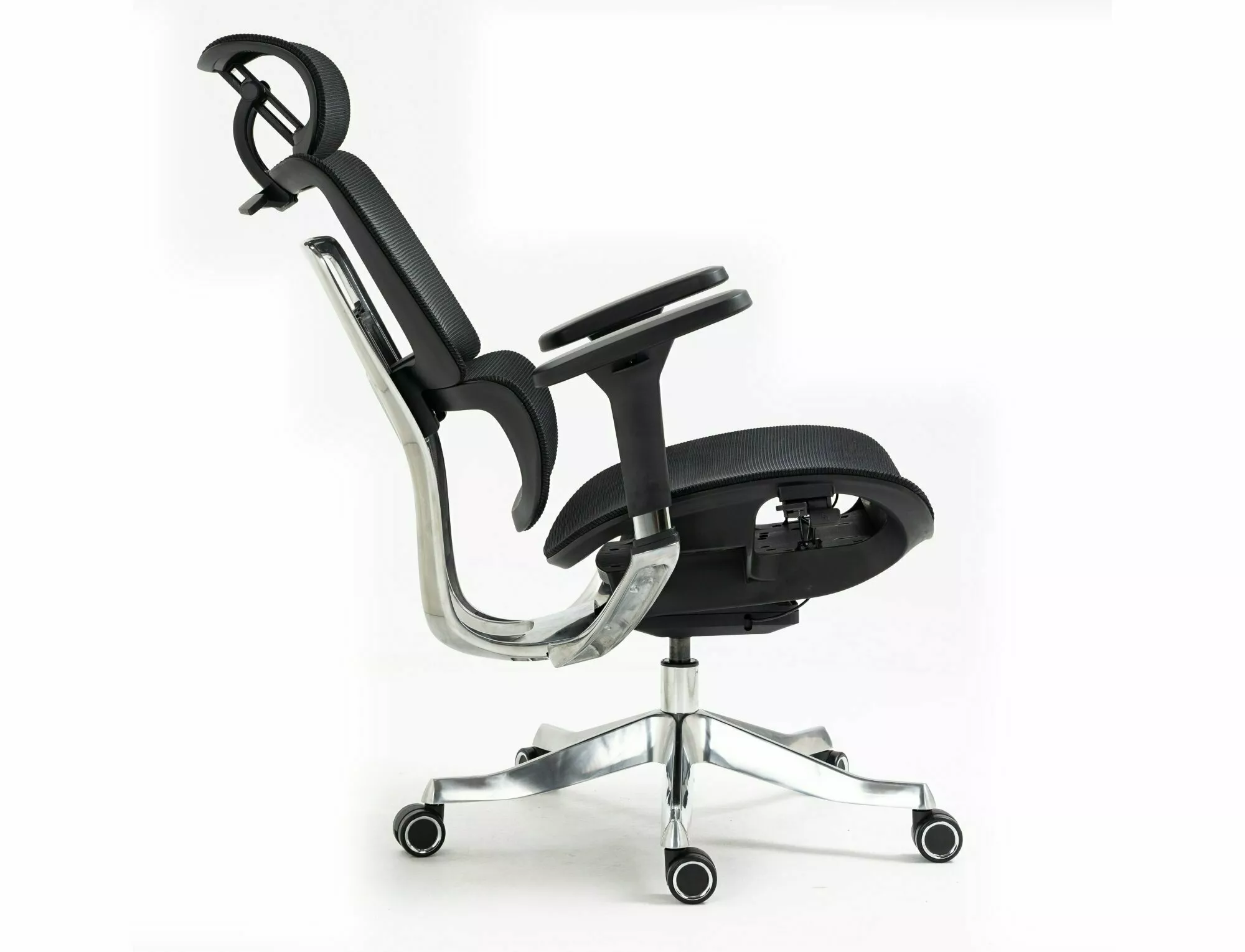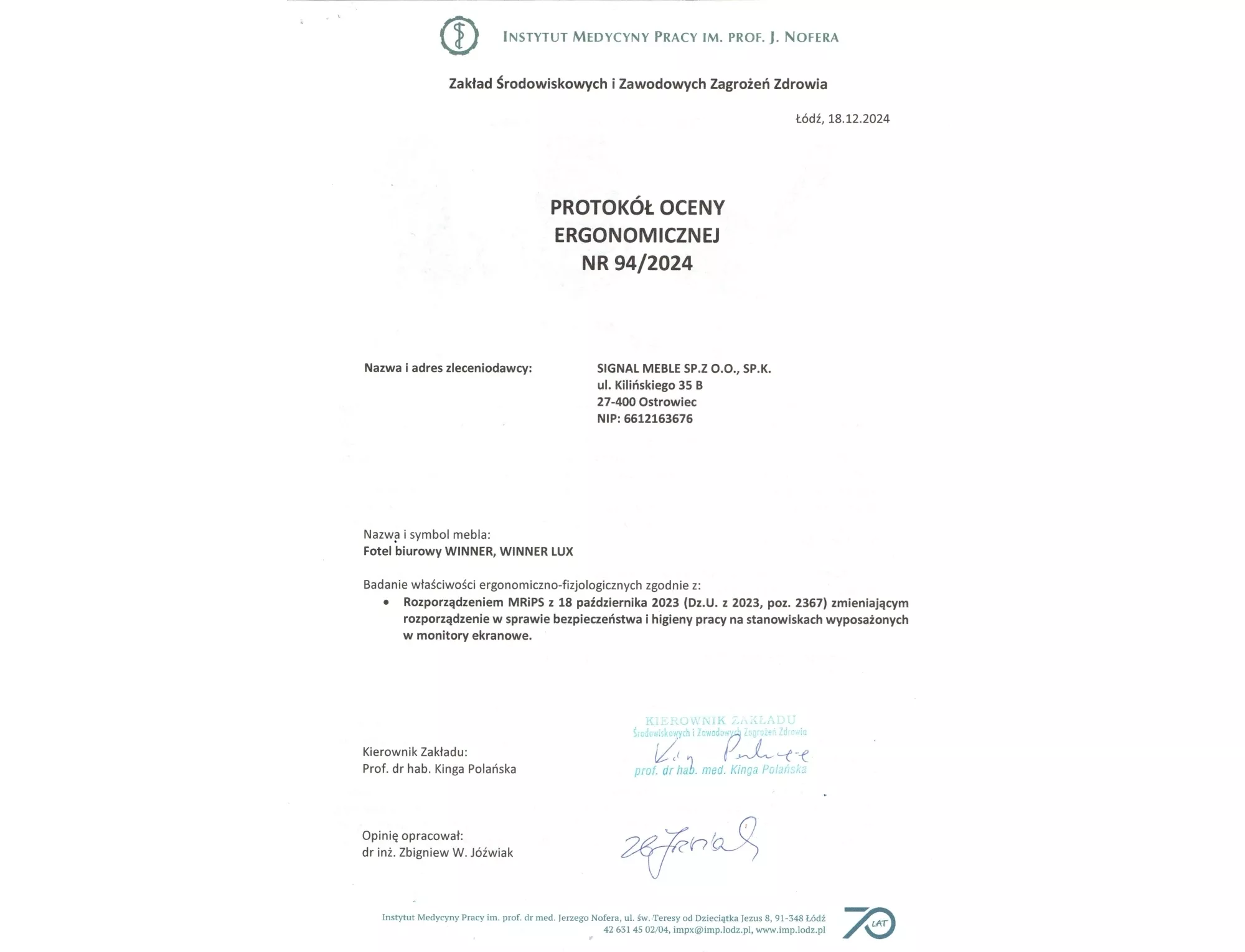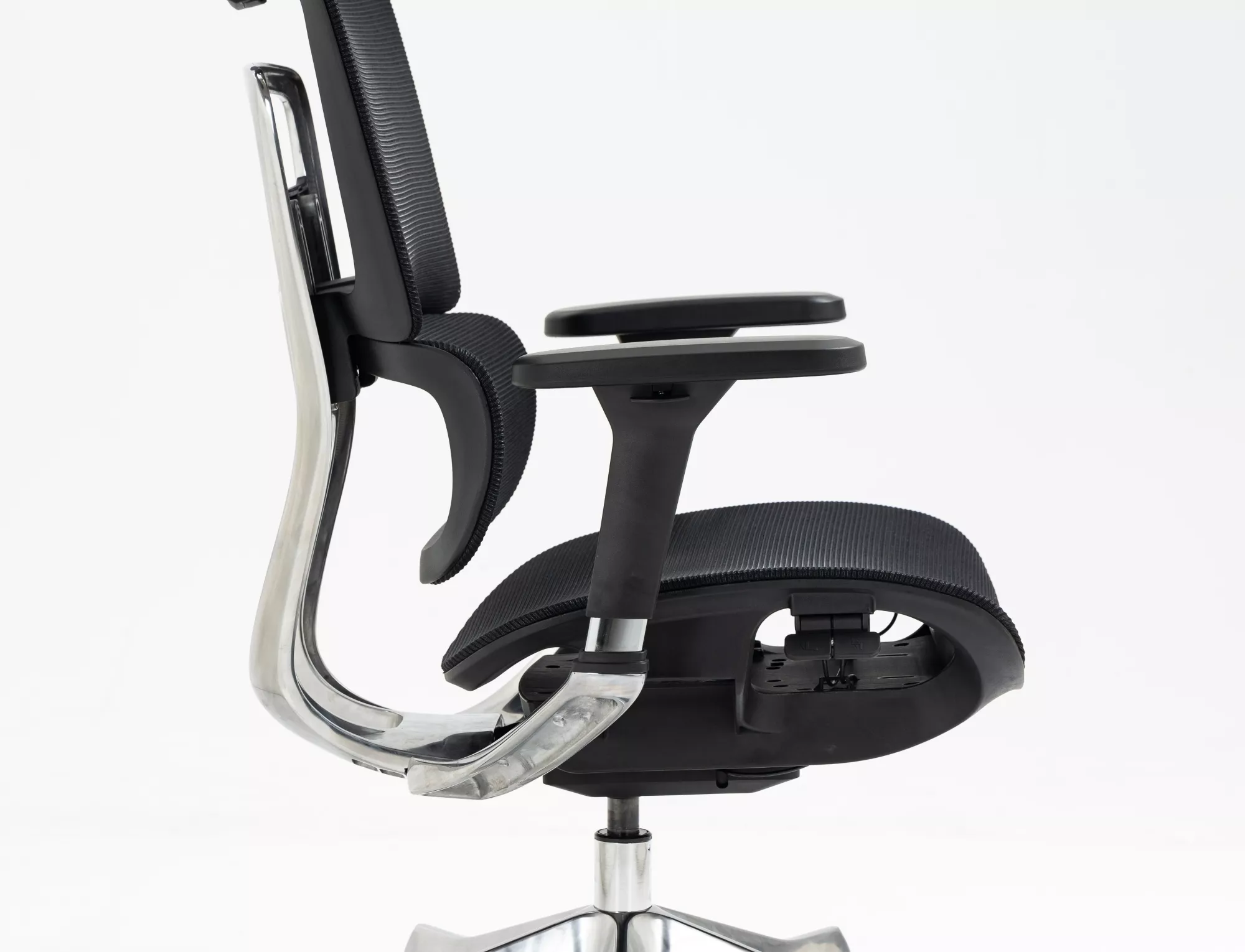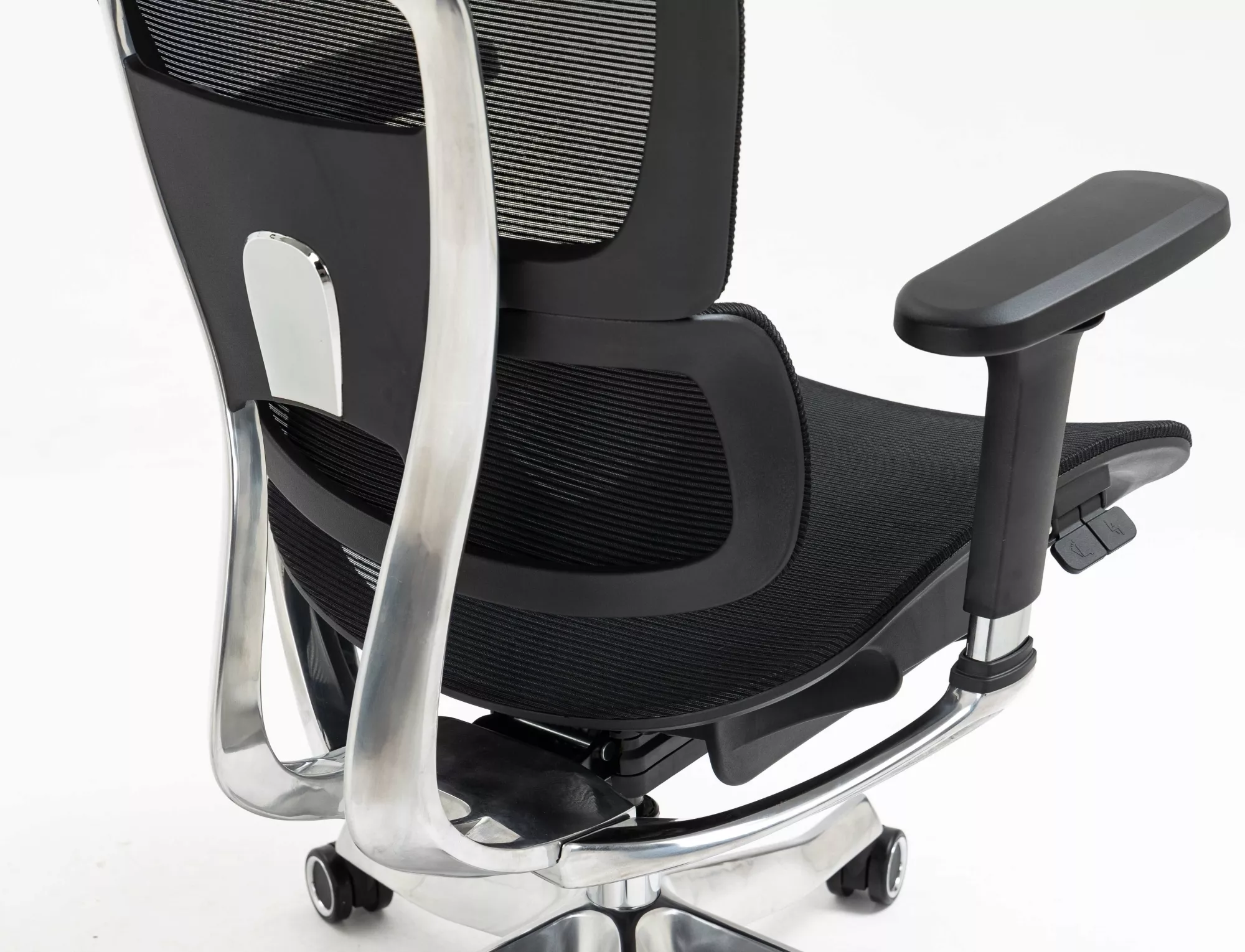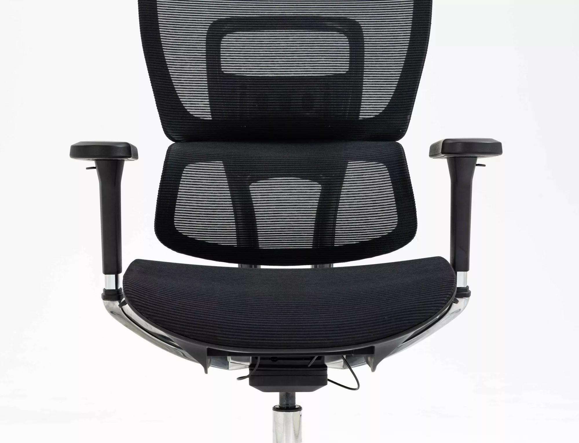 Fotel obrotowy ergonomiczny, spełnia wymogi BHP dotyczące krzeseł biurowych zgodnie z rozporządzeniem Dz. U. poz.2367. Model posiada pozytywną ocenę fizjologiczno-ergonomiczną wydaną przez Instytut Medycyny Pracy (szczegóły w zakładce „PLIKI DO POBRANIA”). Siatka, kolor czarny ,multiblock – sterowanie przewodowe, mechanizm synchroniczny aktywowany ciężarem ciał, regulowane: podłokietniki 4D, zagłówek, odcinek lędźwiowy, głębokość siedziska. Kółka nylonowe, aluminiowy krzyżak/podstawa, max. obciążenie 136kg, siłownik kl. 4.