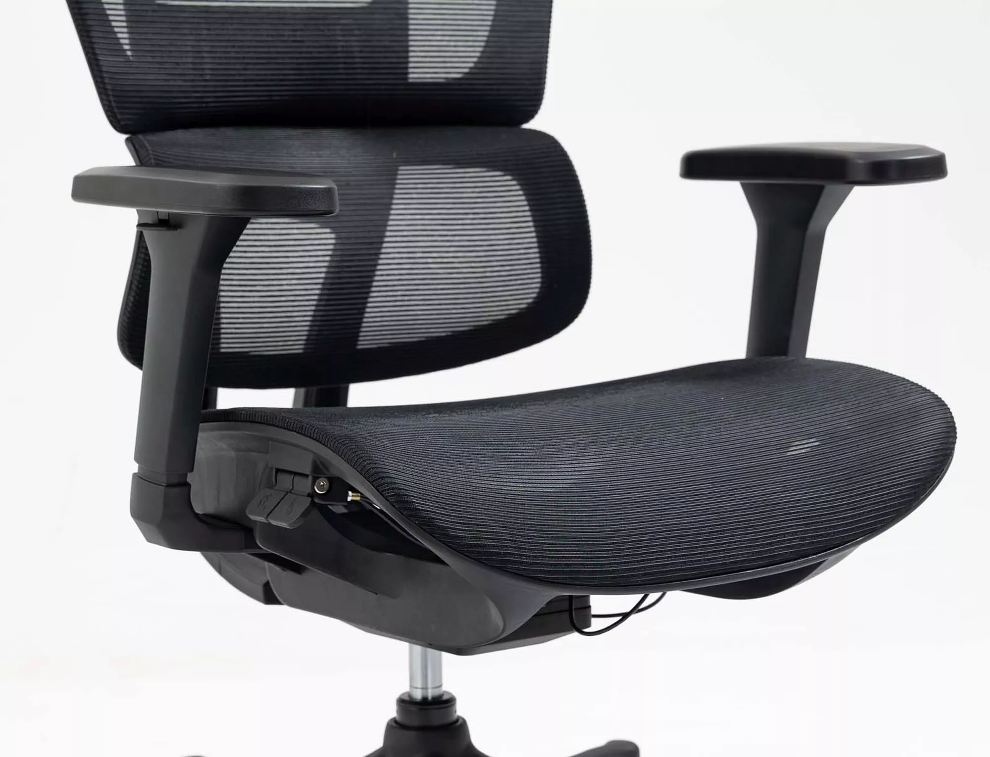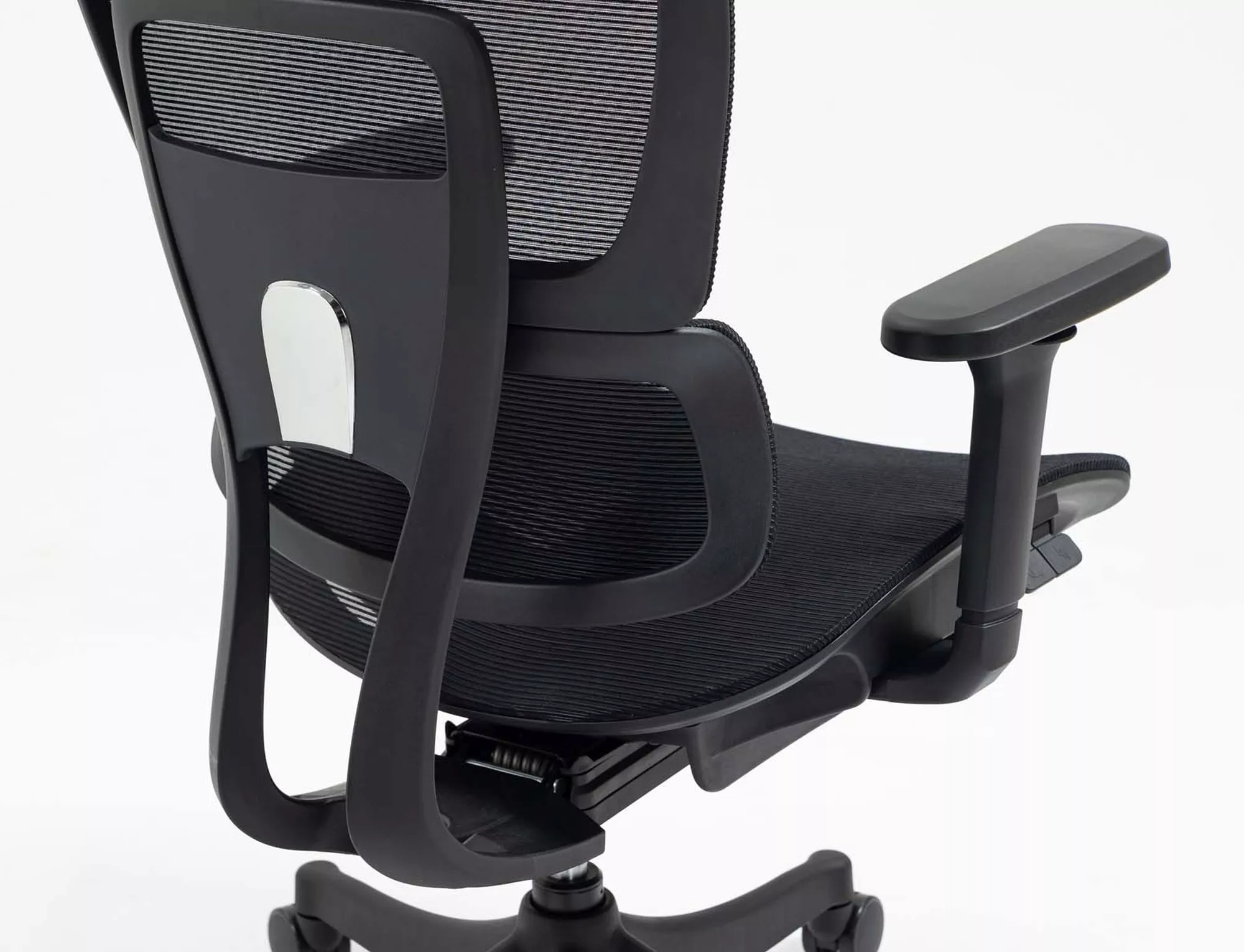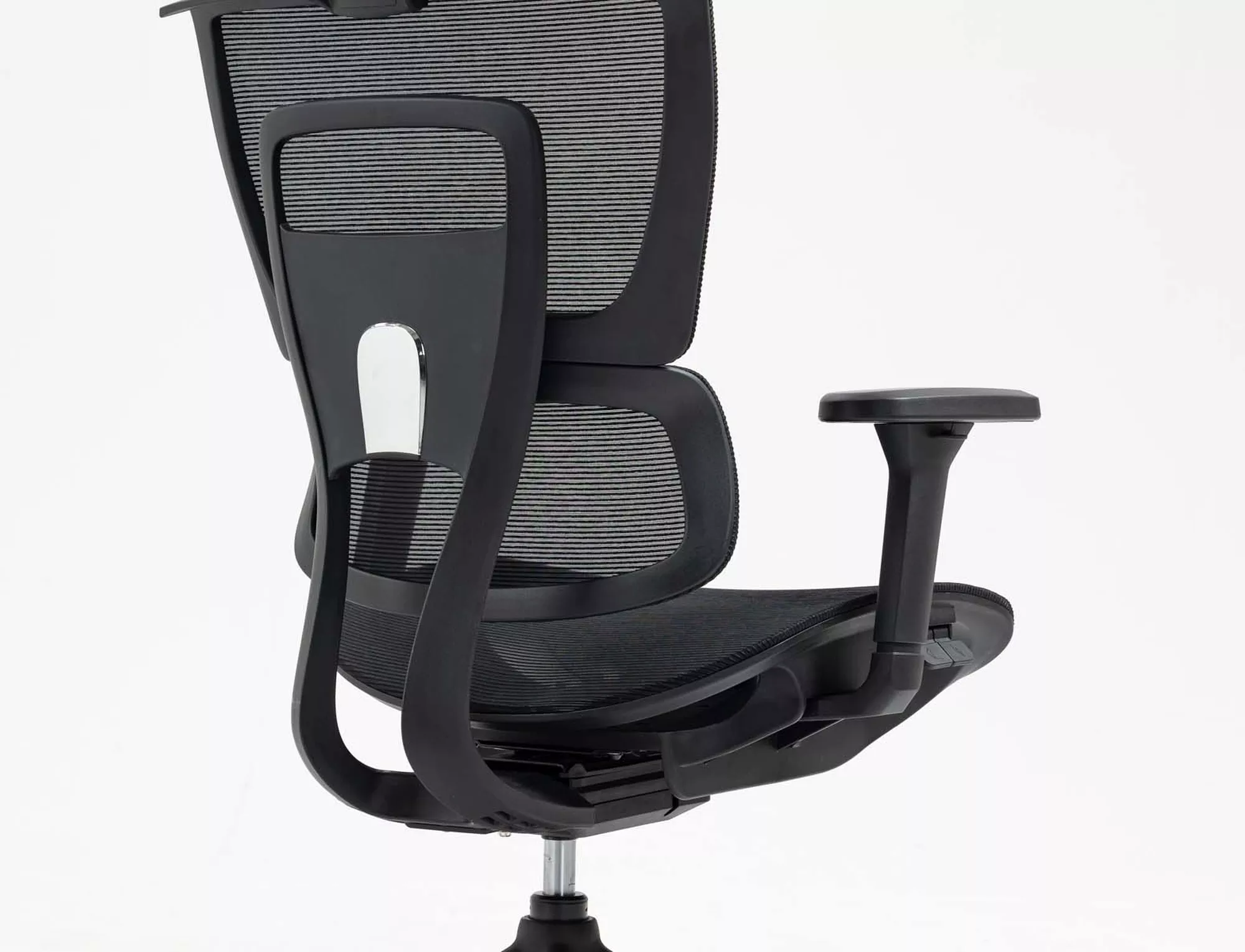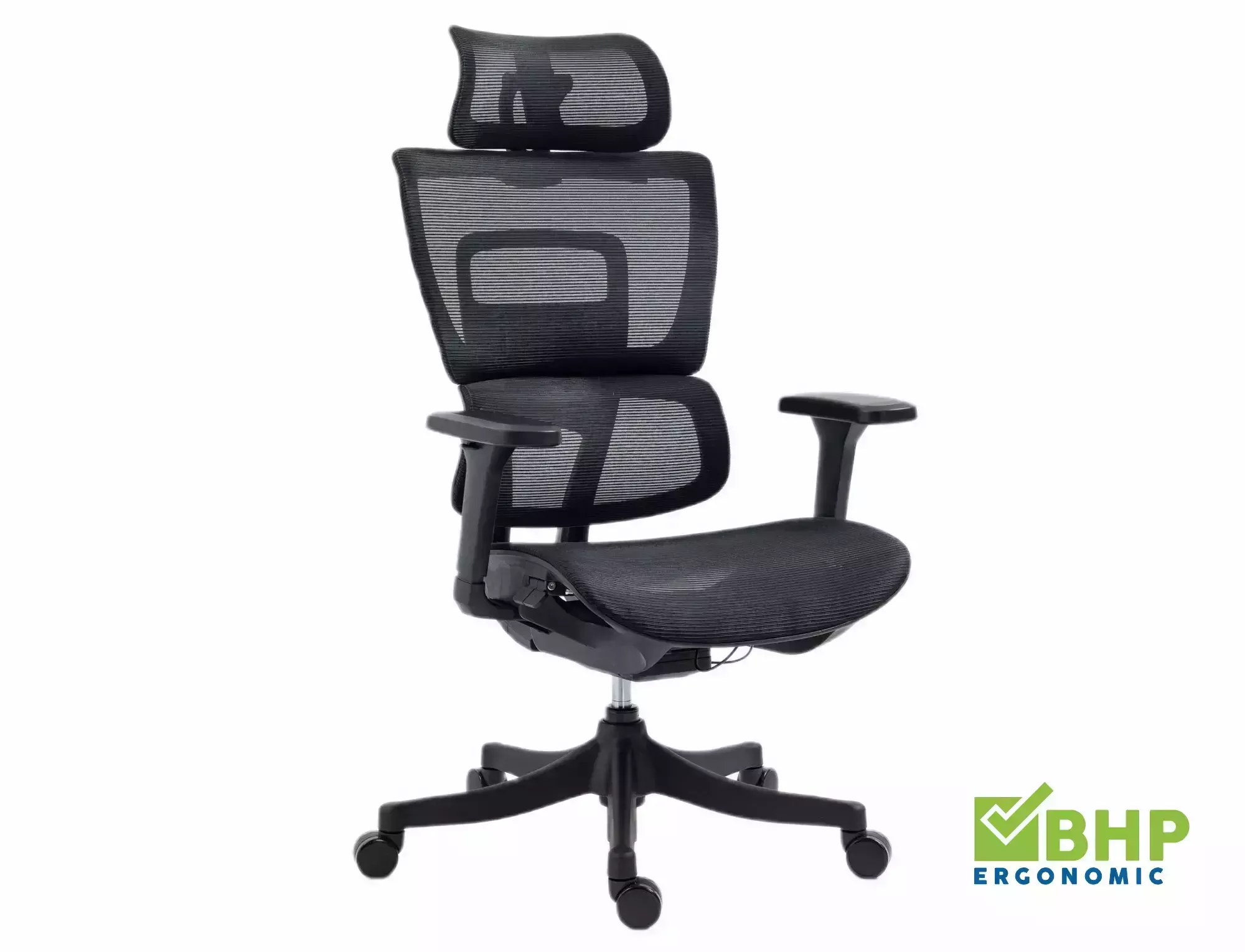 Fotel obrotowy ergonomiczny, spełnia wymogi BHP dotyczące krzeseł biurowych zgodnie z rozporządzeniem Dz. U. poz.2367. Model posiada pozytywną ocenę fizjologiczno-ergonomiczną wydaną przez Instytut Medycyny Pracy (szczegóły w zakładce „PLIKI DO POBRANIA”). Siatka, kolor czarny ,multiblock – sterowanie przewodowe, mechanizm synchroniczny aktywowany ciężarem ciał, regulowane: podłokietniki 4D, zagłówek, odcinek lędźwiowy, głębokość siedziska. Kółka nylonowe, max. obciążenie 136kg, siłownik kl. 4.
