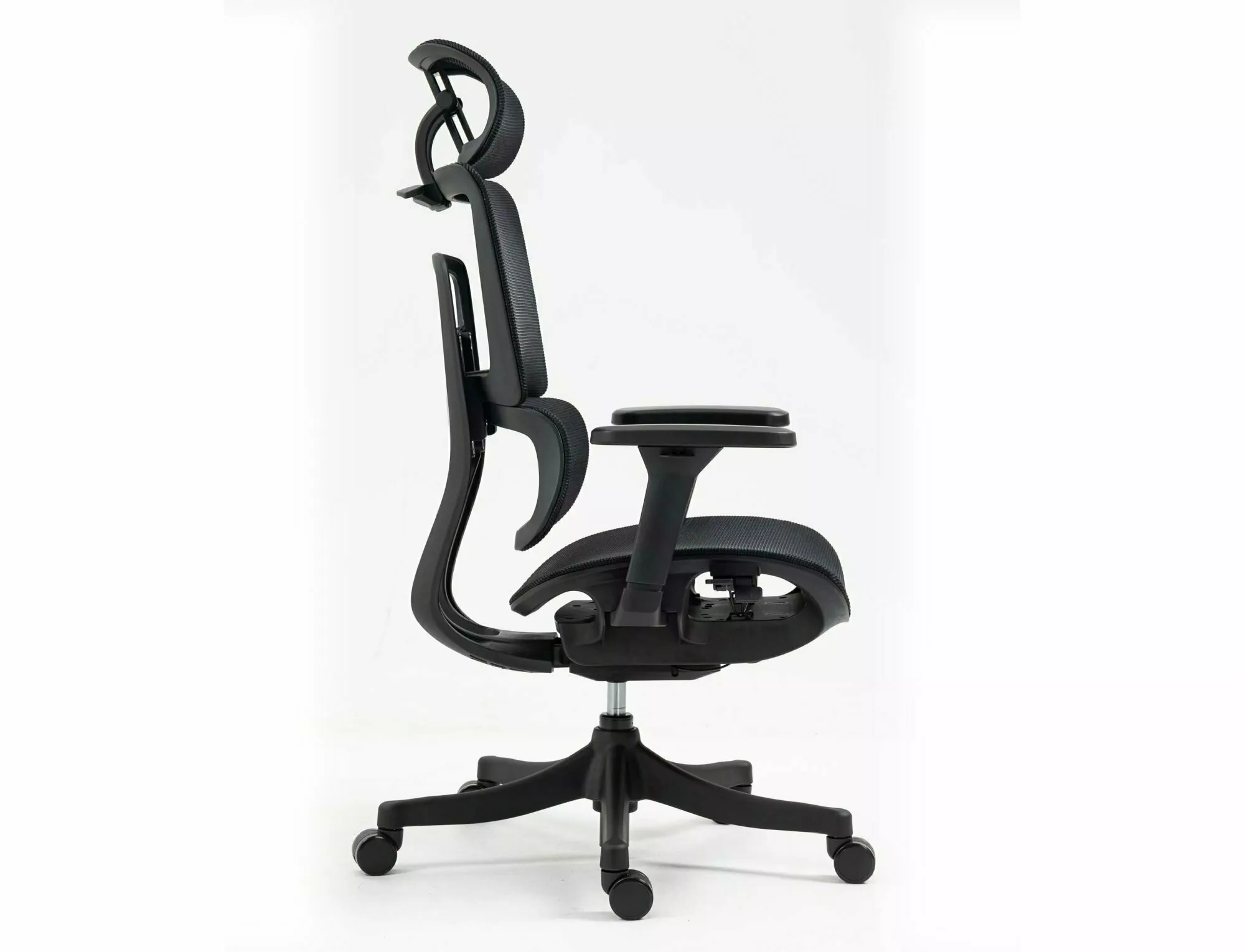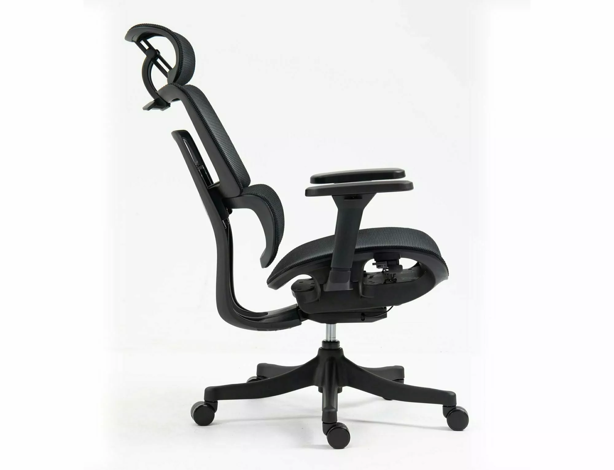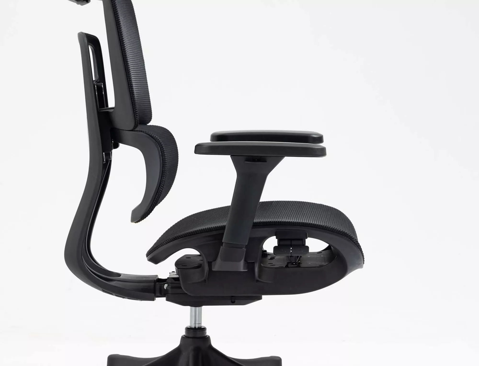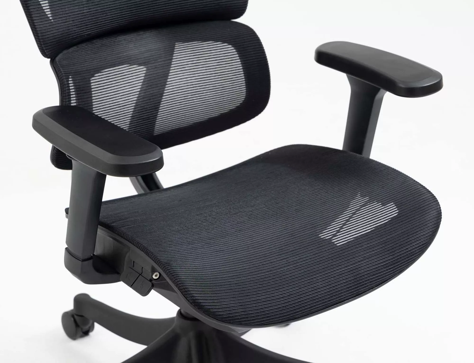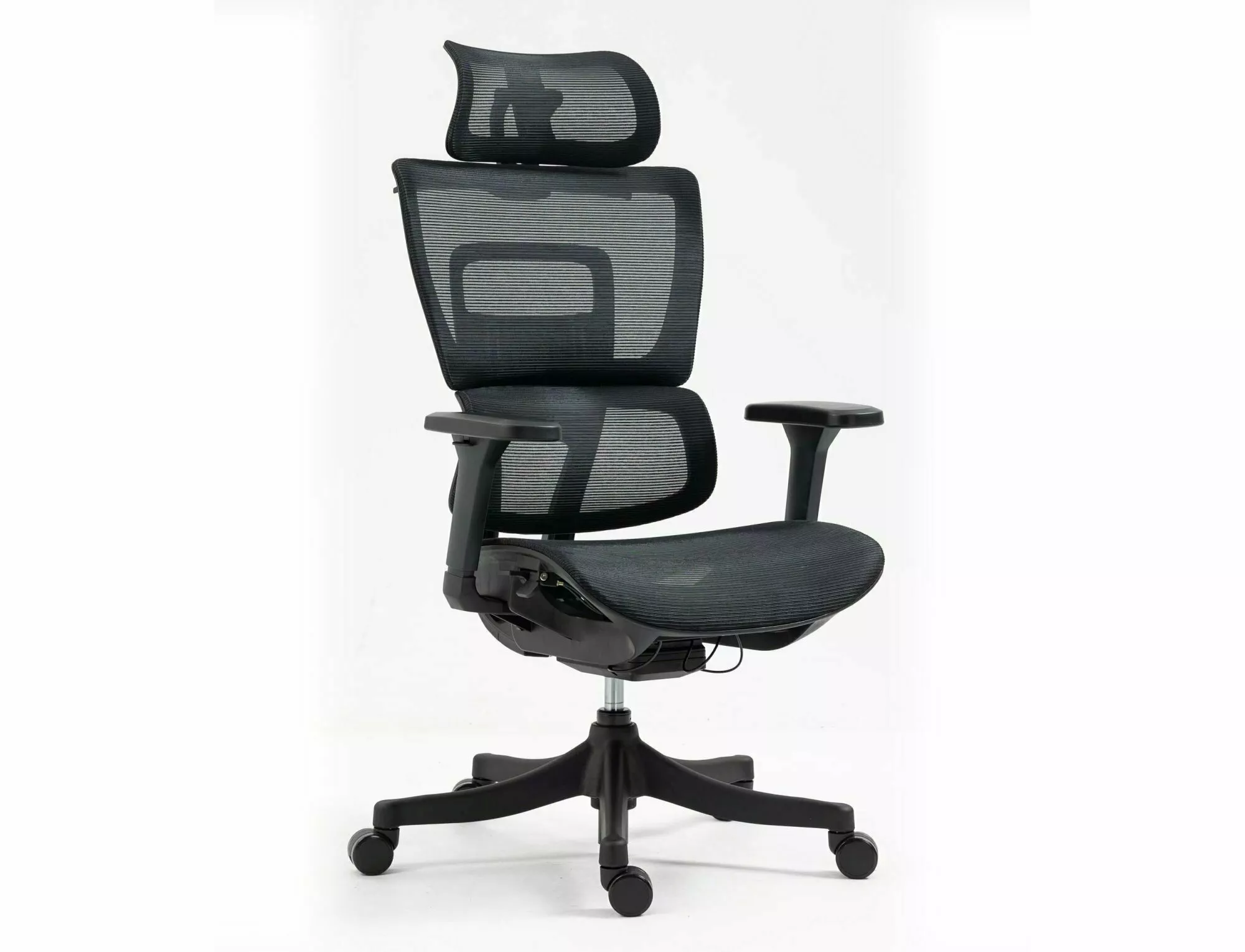 Fotel obrotowy ergonomiczny, spełnia wymogi BHP dotyczące krzeseł biurowych zgodnie z rozporządzeniem Dz. U. poz.2367. Model posiada pozytywną ocenę fizjologiczno-ergonomiczną wydaną przez Instytut Medycyny Pracy (szczegóły w zakładce „PLIKI DO POBRANIA”). Siatka, kolor czarny ,multiblock – sterowanie przewodowe, mechanizm synchroniczny aktywowany ciężarem ciał, regulowane: podłokietniki 4D, zagłówek, odcinek lędźwiowy, głębokość siedziska. Kółka nylonowe, max. obciążenie 136kg, siłownik kl. 4.