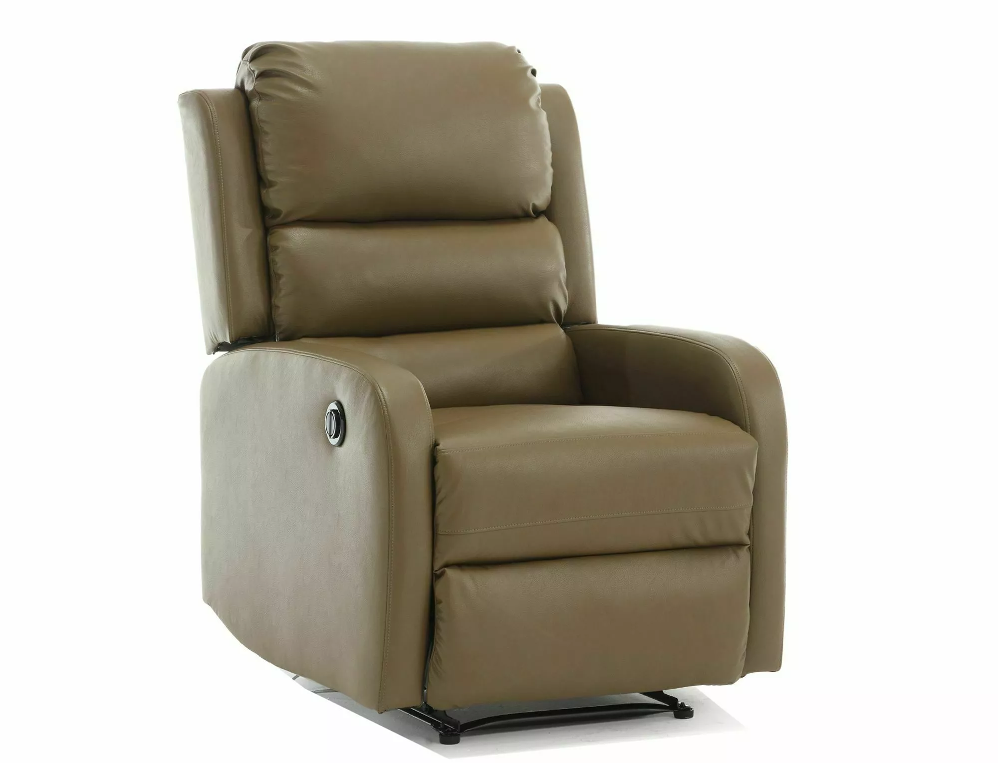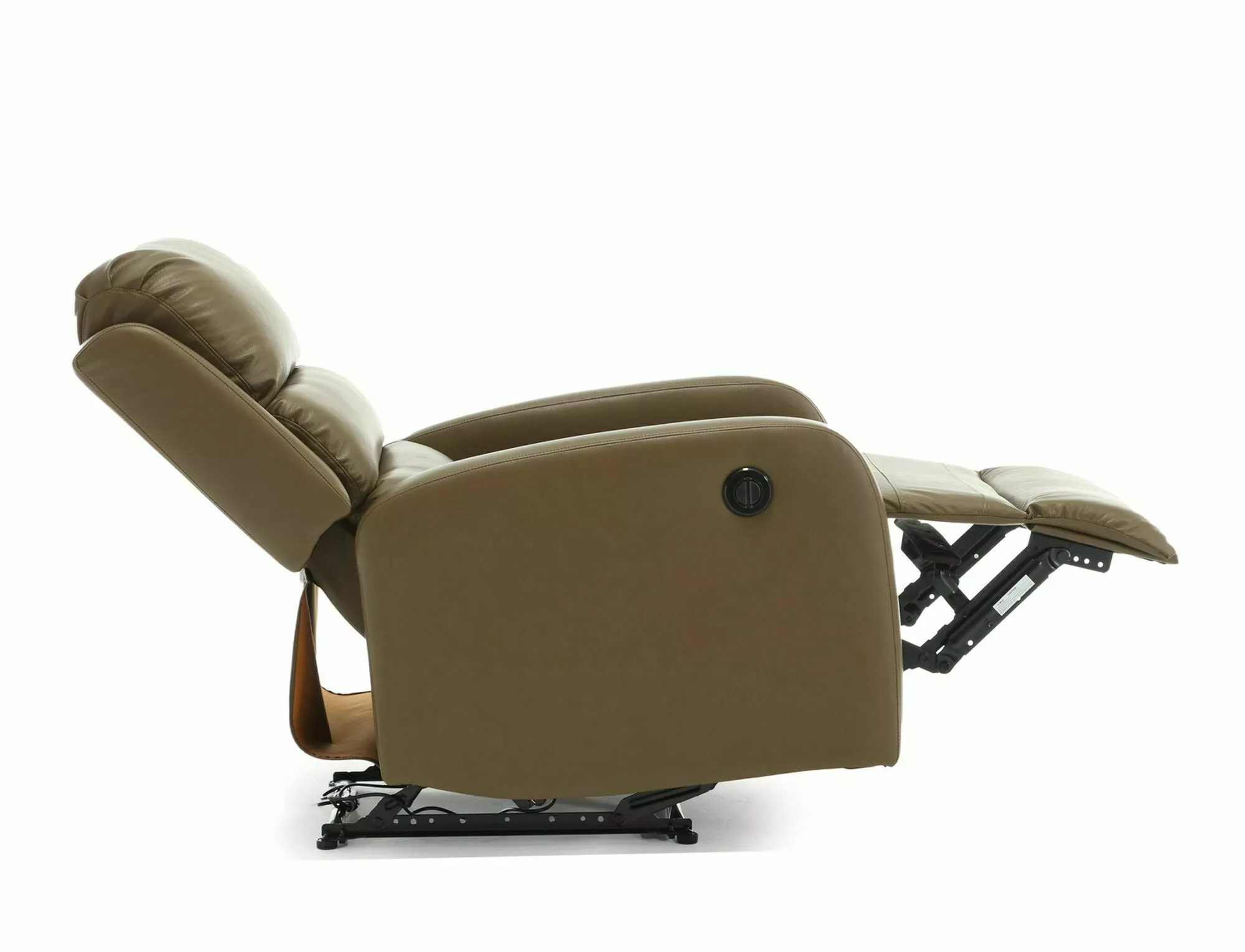 Fotel rozkładany elektrycznie, skóra syntetyczna Buffalo, kolor: oliwkowy 10. Sterowanie rozkładaniem za pomocą panelu na prawym boku fotela.