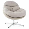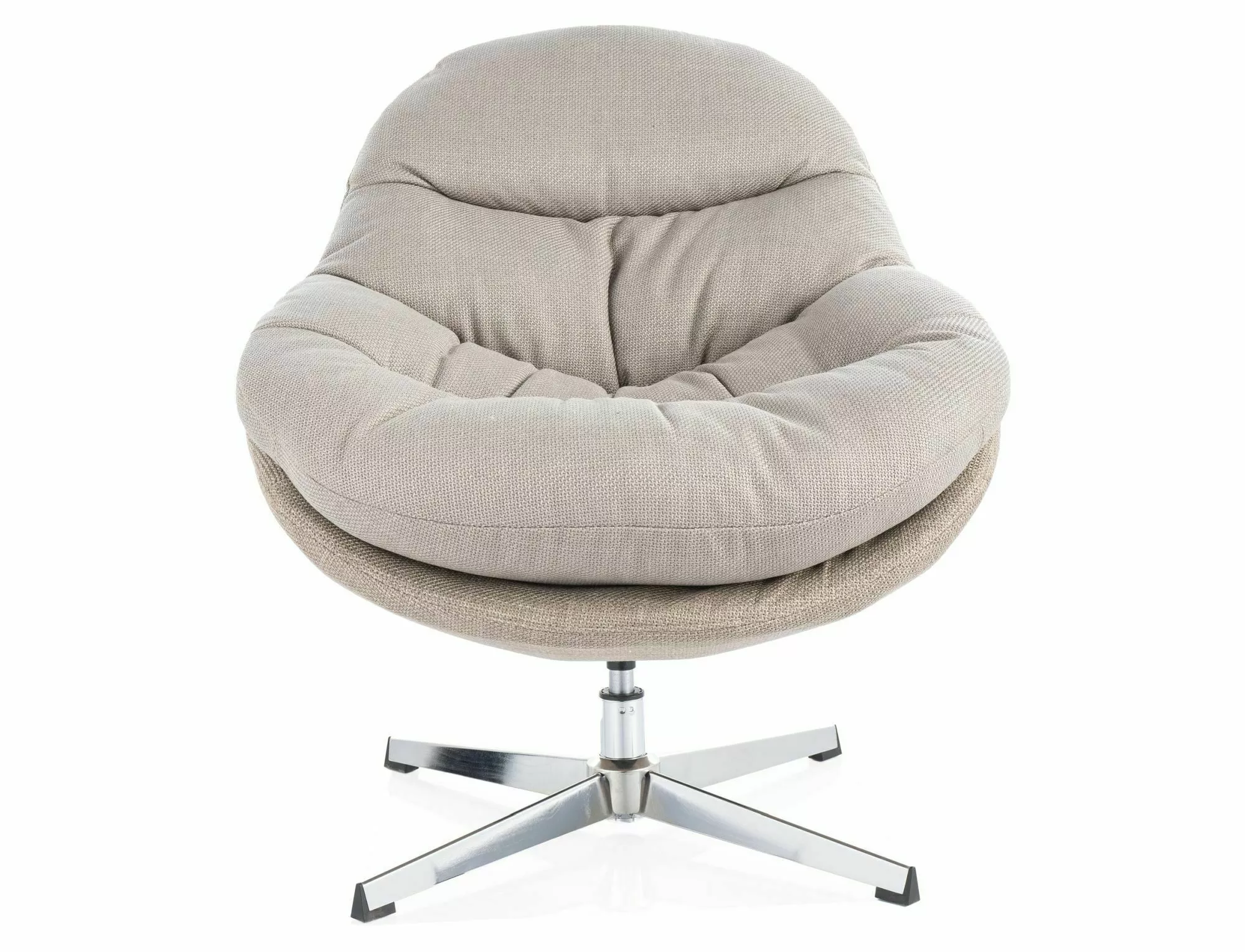 Fotel, tapicerka: tkanina, stelaż: metal, kolor: szary – beżowy / chrom. Siedzisko obracane w zakresie 360st.