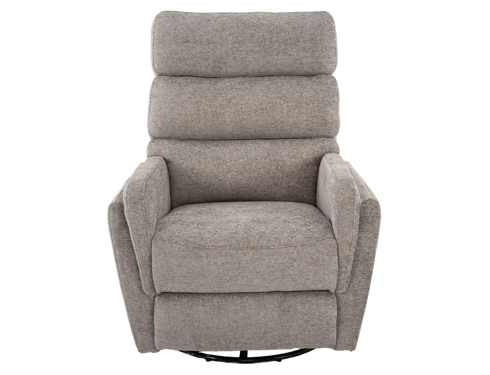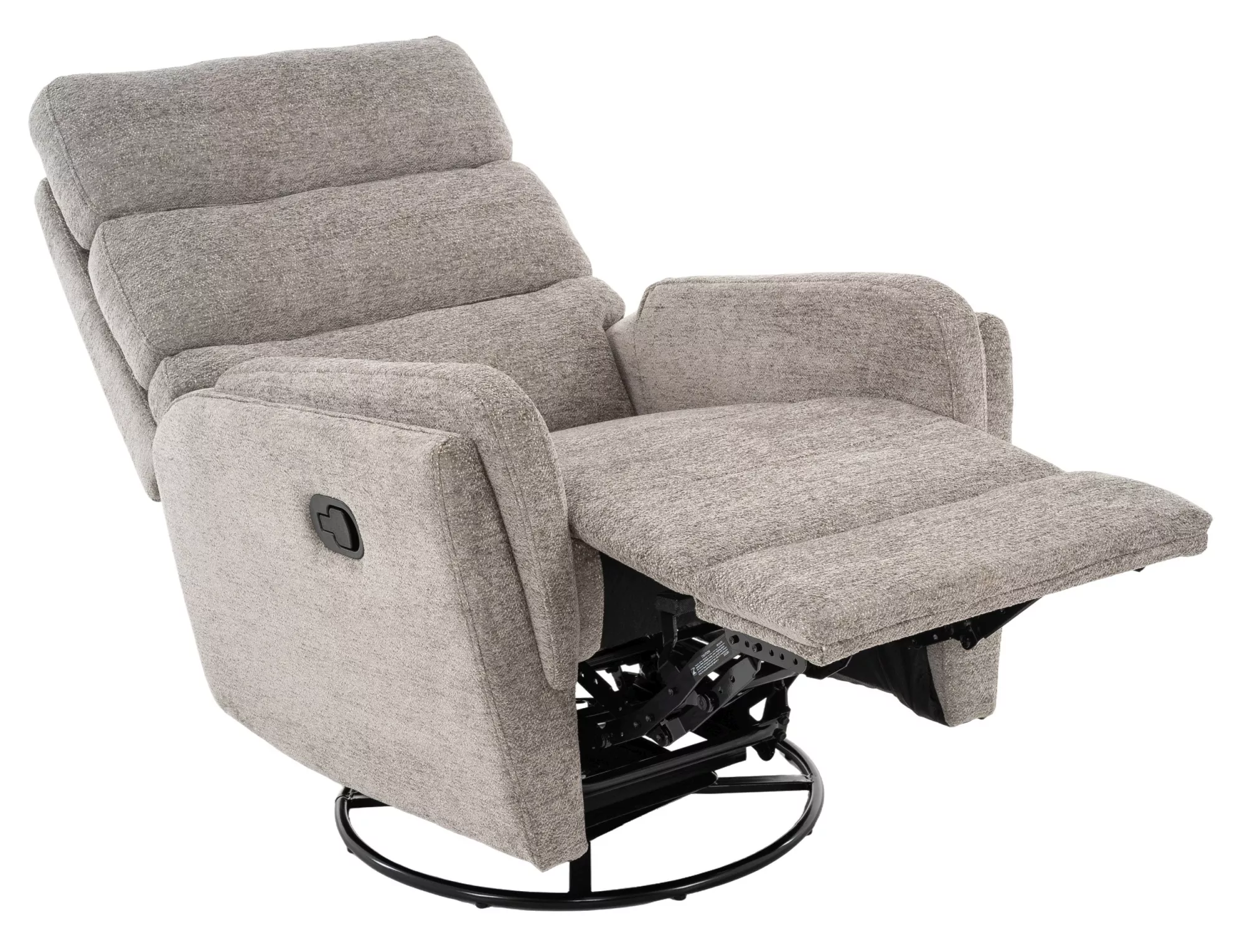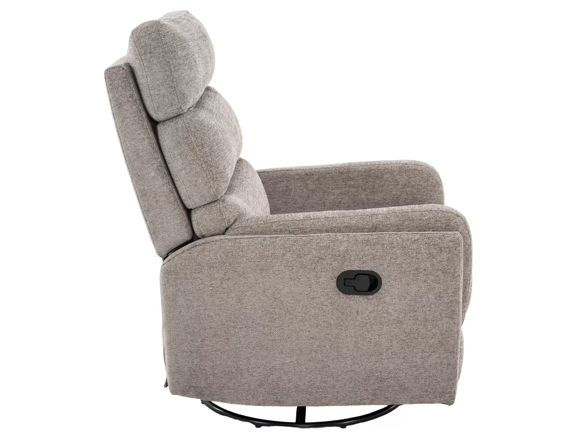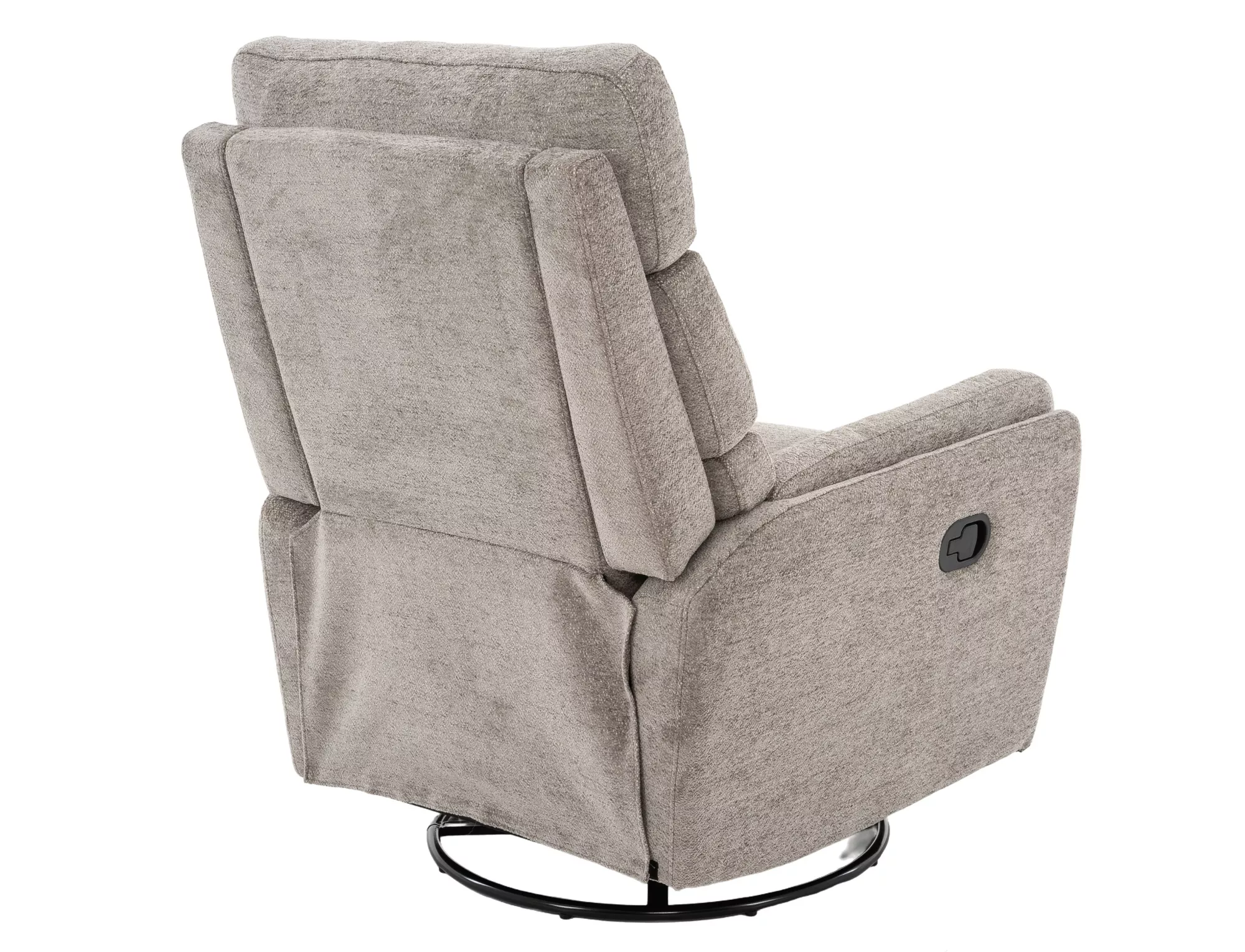 Fotel rozkładany z funkcją kołyski, tkanina Raven 07, stelaż: metal, kolor: szary / czarny. Siedzisko obracane w zakresie 360st., opcja kołyski działa w pozycji złożonej.