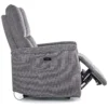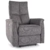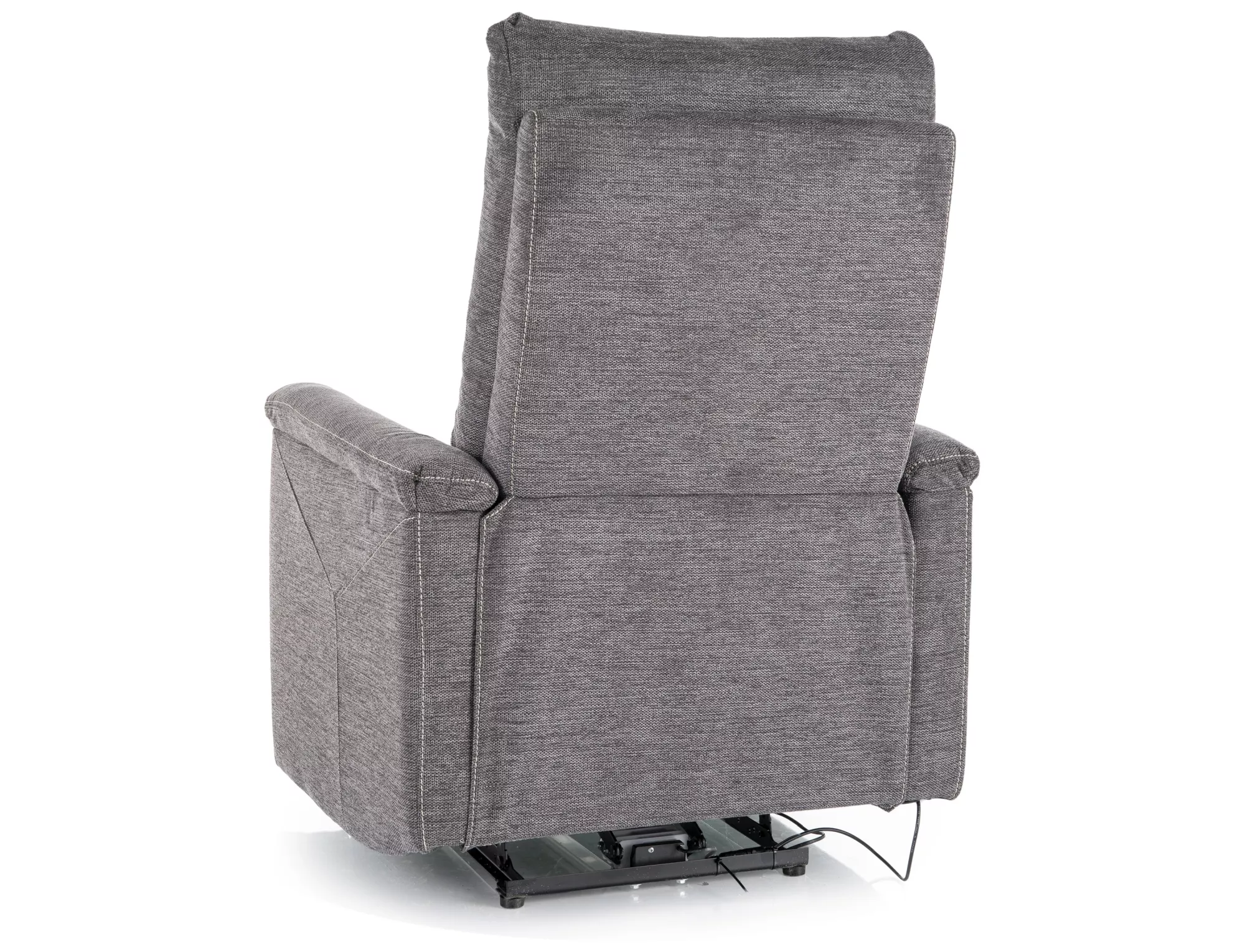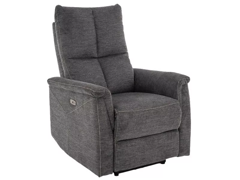 Fotel rozkładany elektrycznie, tkanina Brego 18, stelaż: metal, kolor: ciemny szary / czarny. Rozkładanie sterowane przyciskami na prawym boku, port USB.