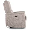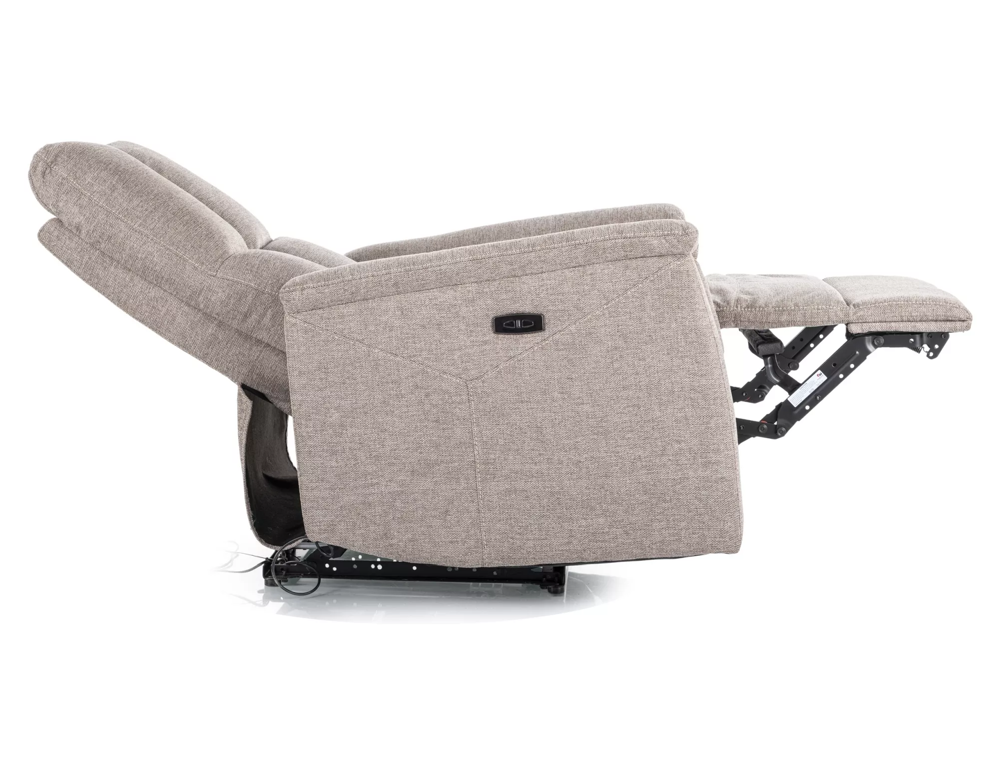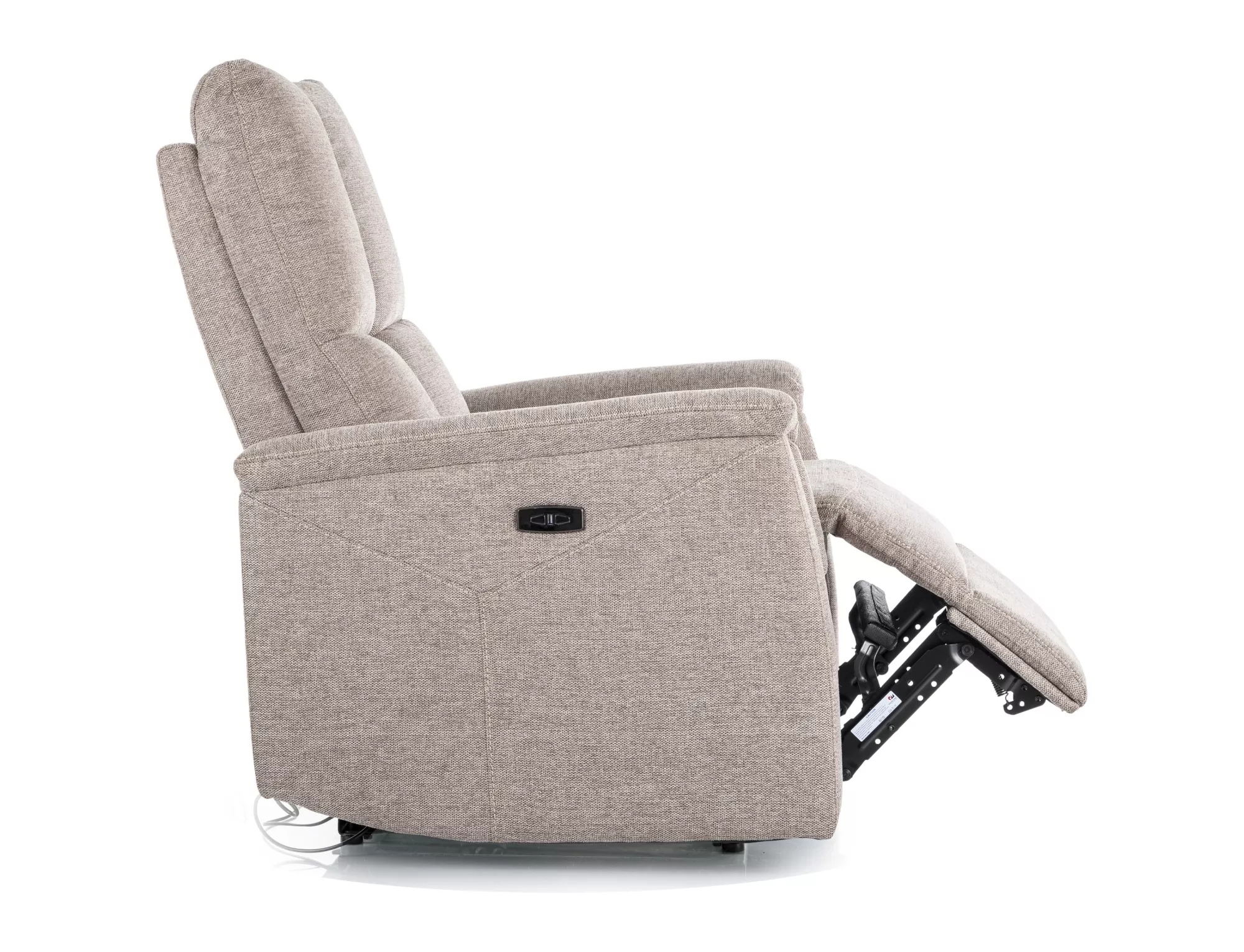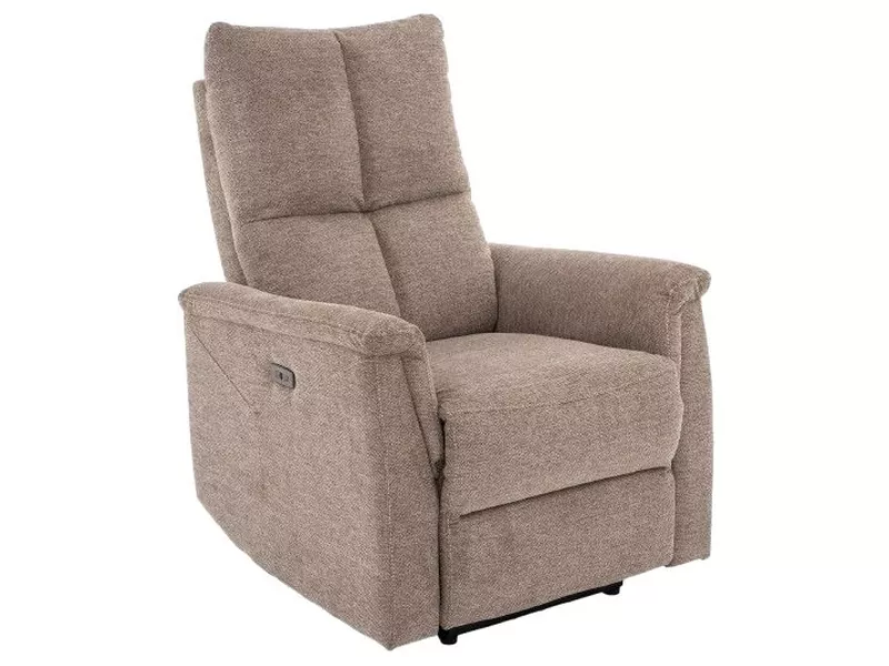 Fotel rozkładany elektrycznie, tkanina Brego 34, stelaż: metal, kolor: beżowy / czarny. Rozkładanie sterowane przyciskami na prawym boku, port USB.