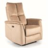 Fotel rozkładany, tapicerka: tkanina aksamit Bluvel, stelaż: metal, kolor: 28 beżowy / czarny. Rozkładanie elektryczne, port USB.