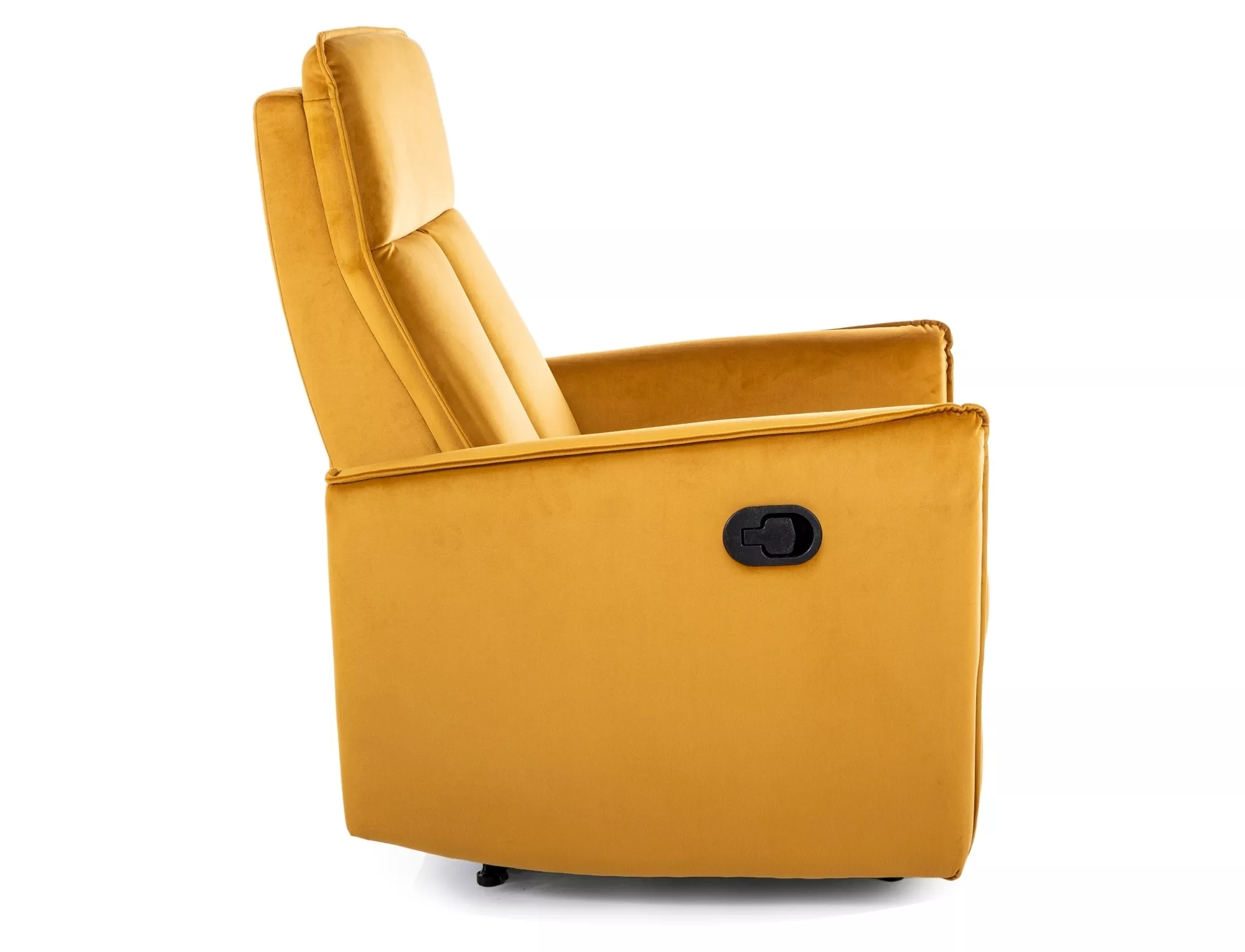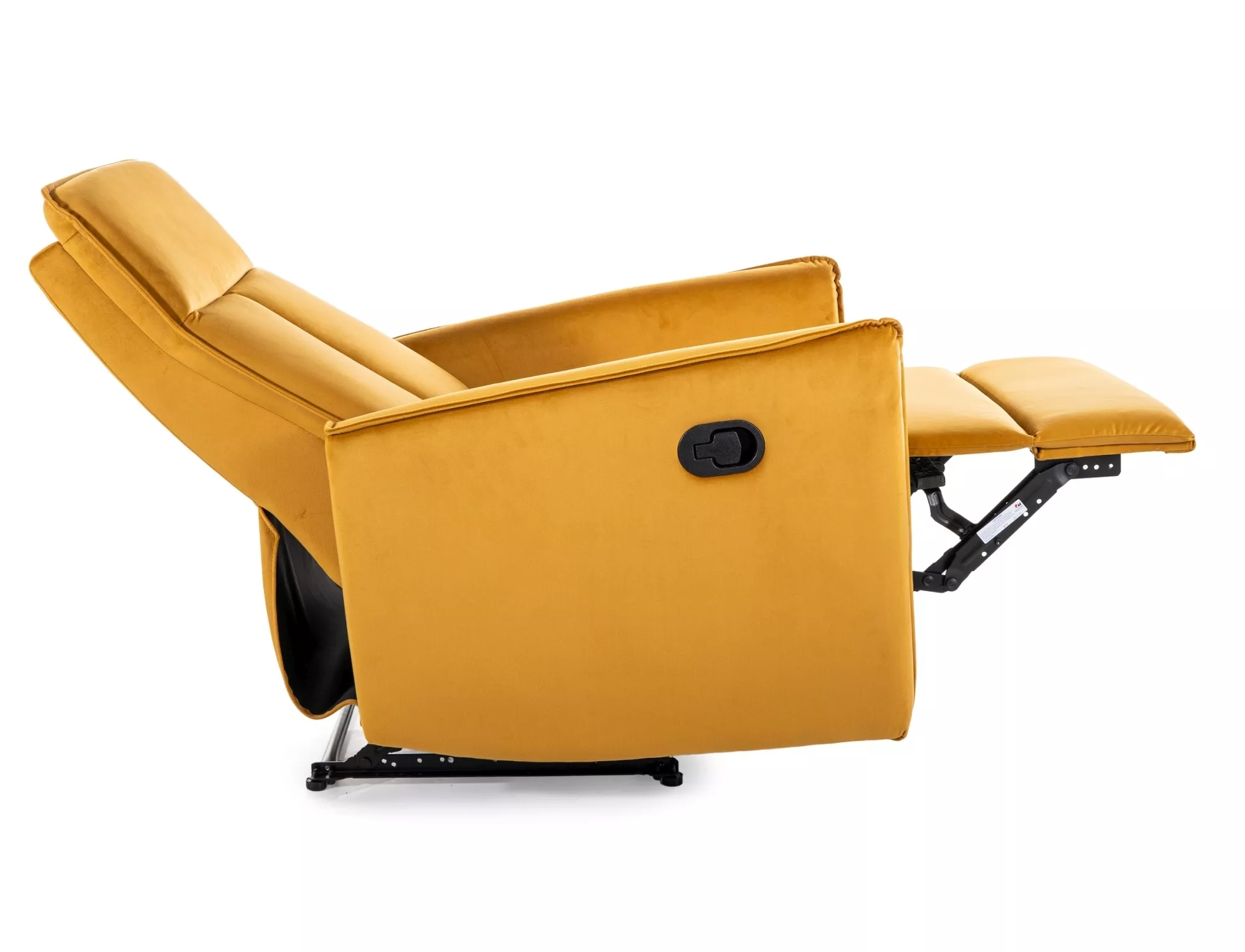 Fotel rozkładany, tkanina aksamit: Bluvel 68, stelaż: metal, kolor: curry / czarny.