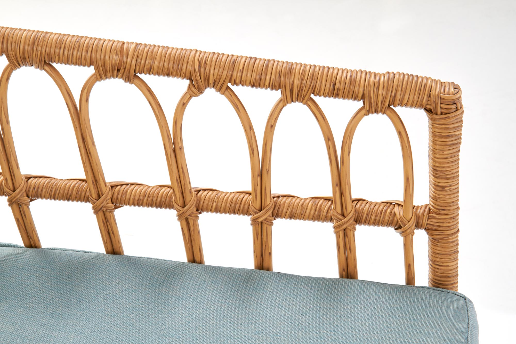 wymiary: 140/58/71/38 cm, materiał: rattan syntetyczny / stal malowana proszkowo / tkanina, kolor: naturalny – wielobarwny