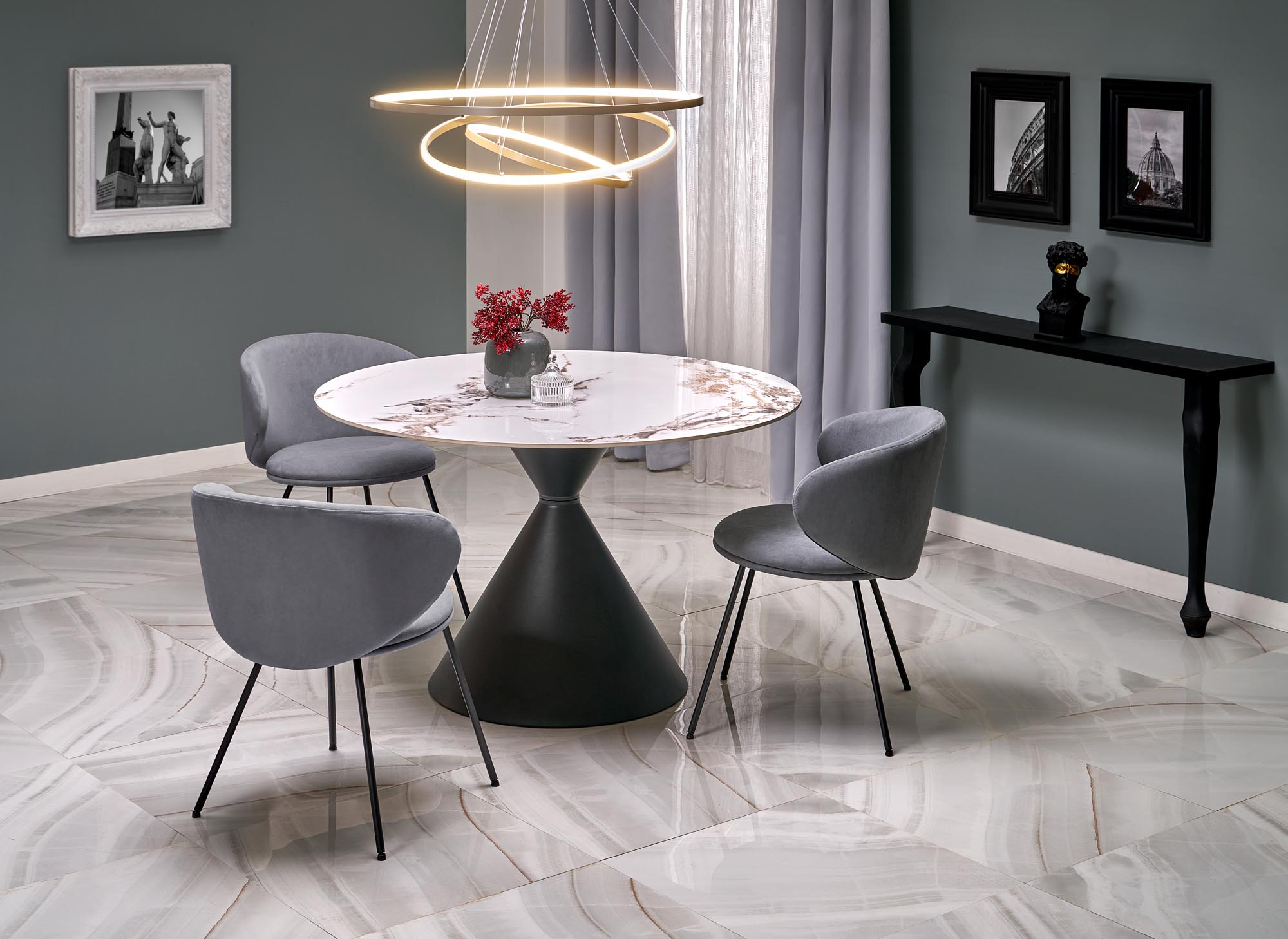 GARET stół okrągły, biały marmur / czarny (2p=1szt)