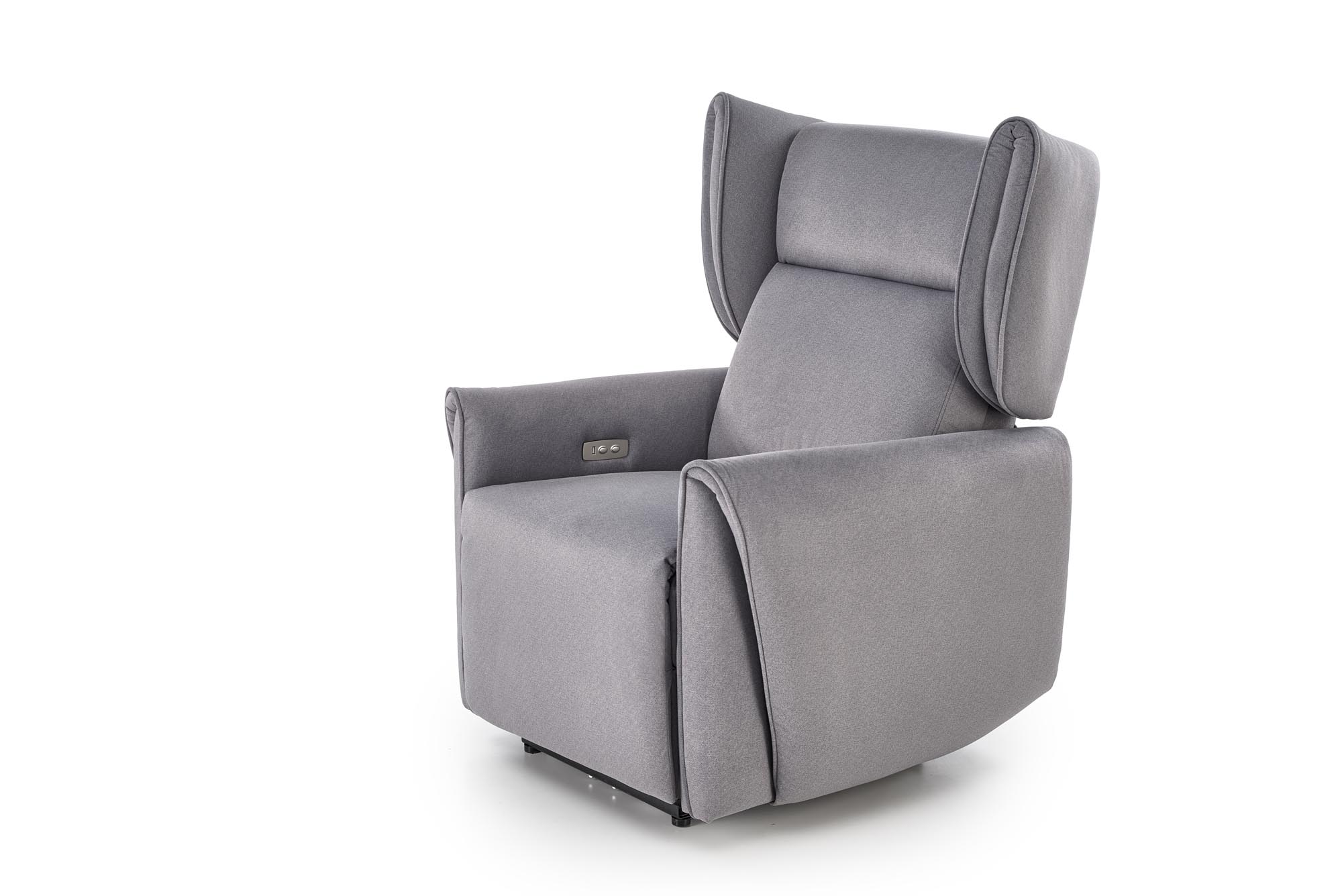 wymiary: 83/91-161/109-95/48-53 cm, fotel z funkcją elektrycznego rozkładania, materiał: tkanina, kolor: popielaty