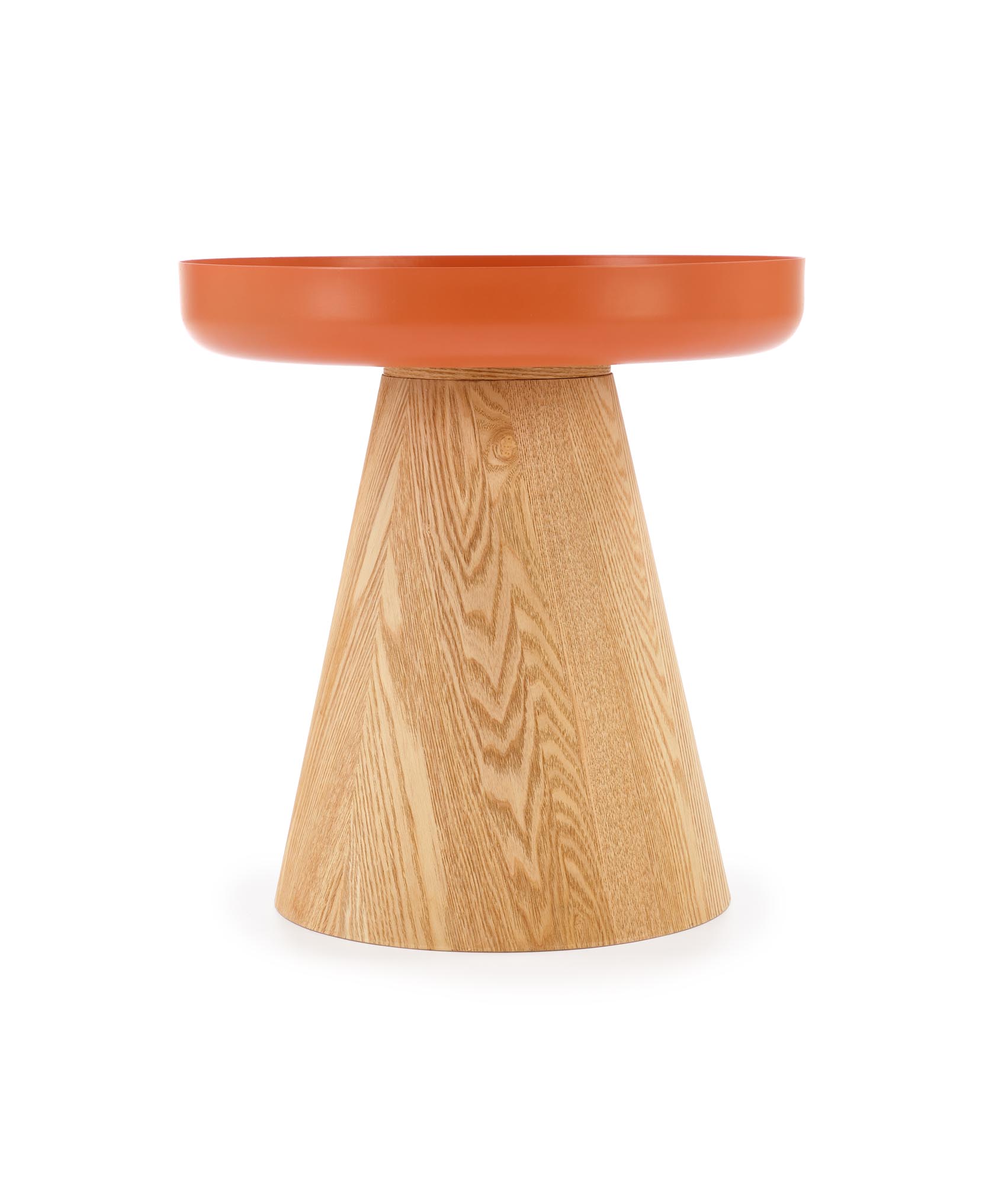 wymiary: fi40/42 cm, materiał: MDF + okleina naturalna / stal malowana proszkowo, kolory: naturalny – cynamonowy