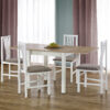 stół rozkładany, wymiary: 80÷160/80/76 cm, materiał: blat – płyta laminowana, na obrzeżach ABS, nogi – MDF laminowany, kolor: dąb sonoma / biały