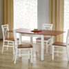 stół rozkładany, wymiary: 80÷160/80/76 cm, materiał: blat – płyta laminowana, na obrzeżach ABS, nogi – MDF laminowany, kolor: olcha / biały