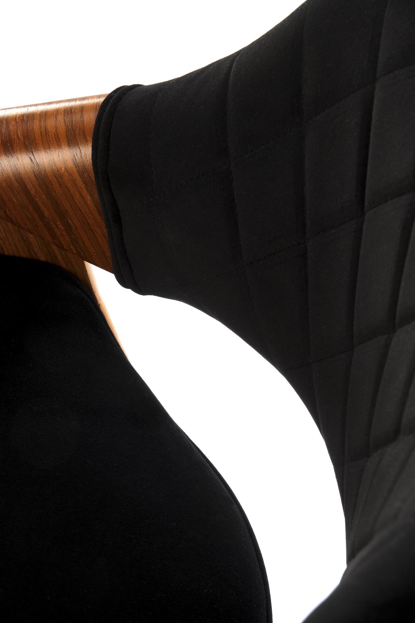 wymiary: 55/52/93-114/62-83 cm, tkanina – velvet / sklejka gięta / stal malowana proszkowo, kolor: czarny – orzechowy