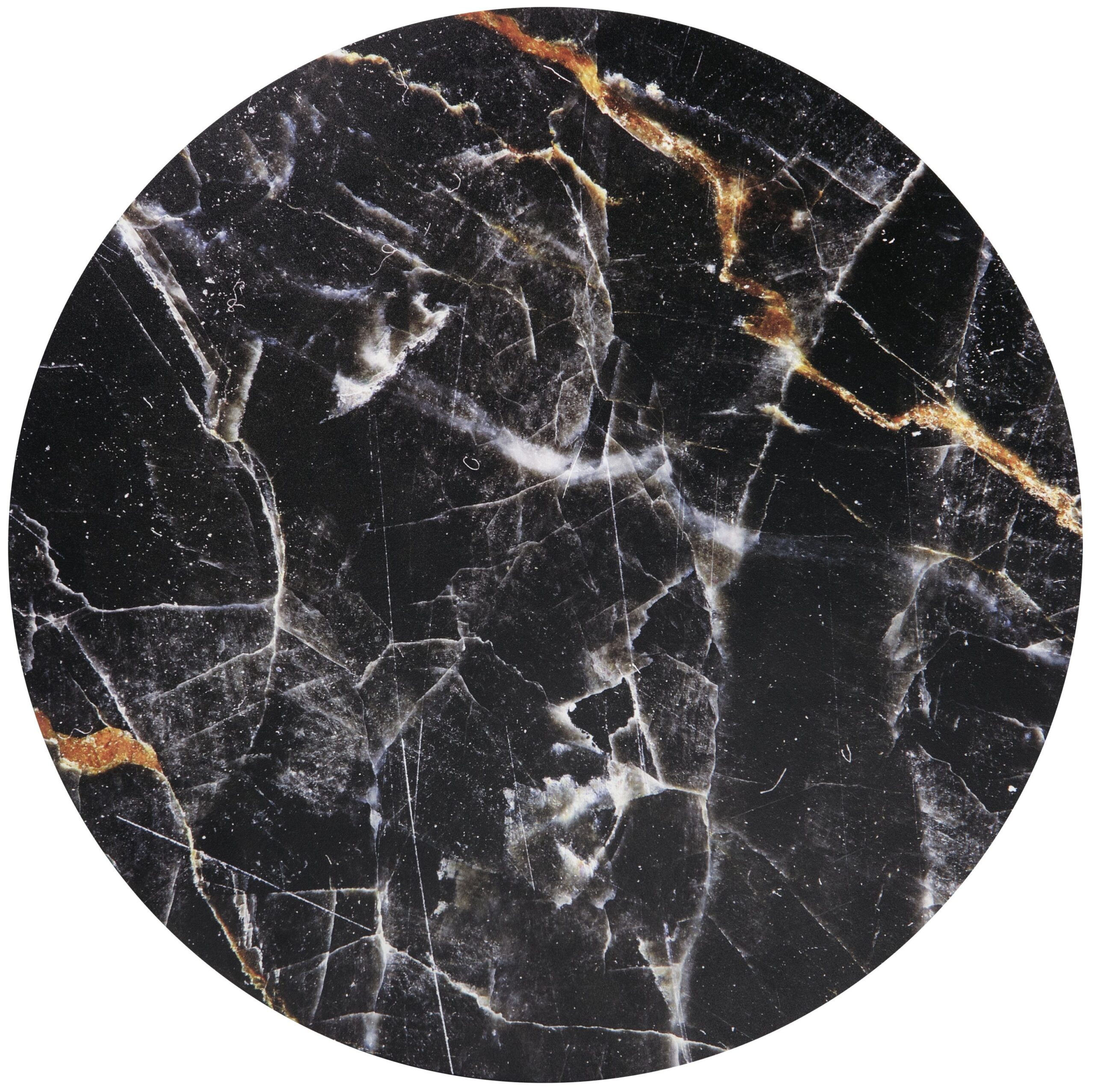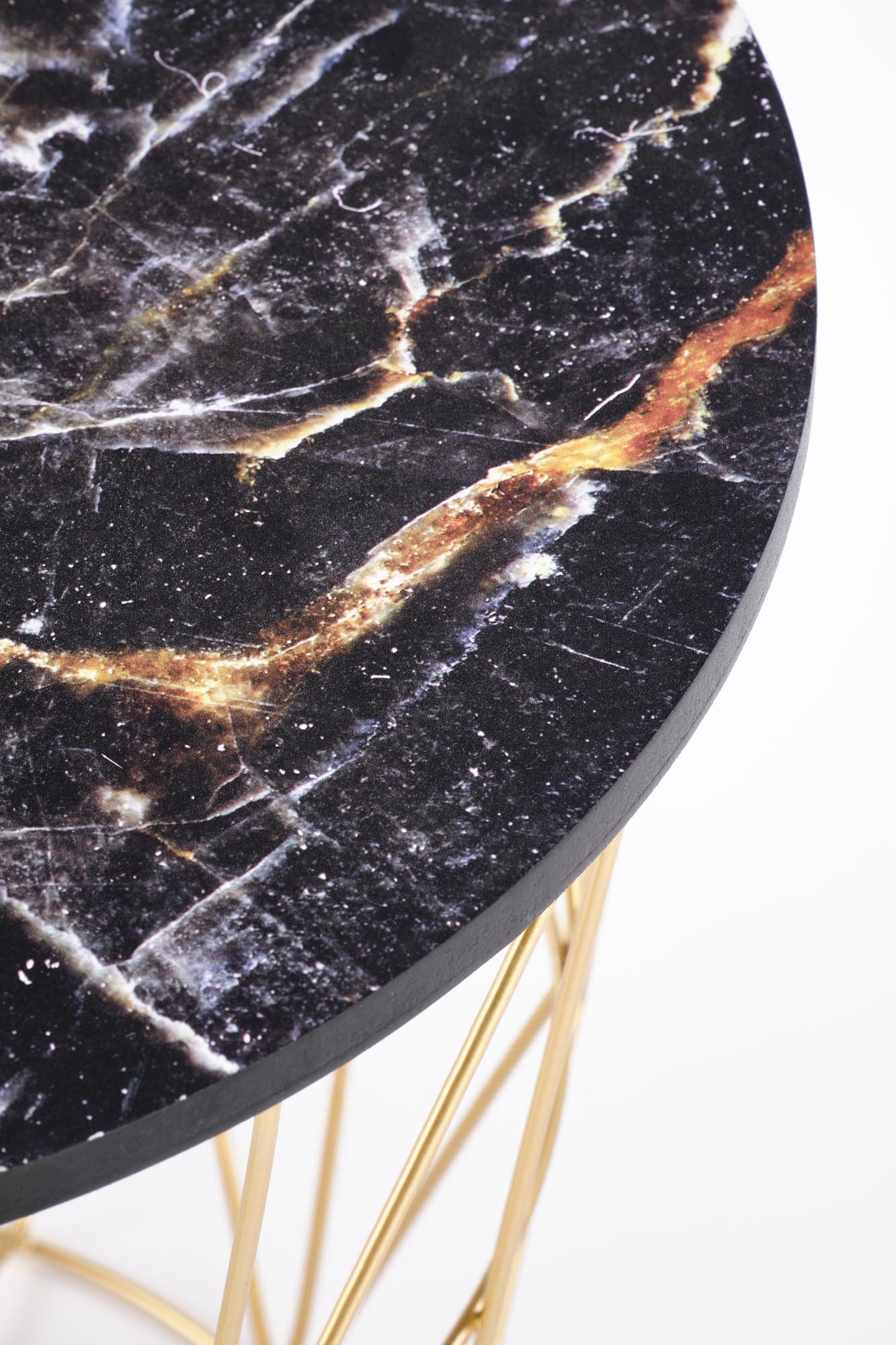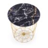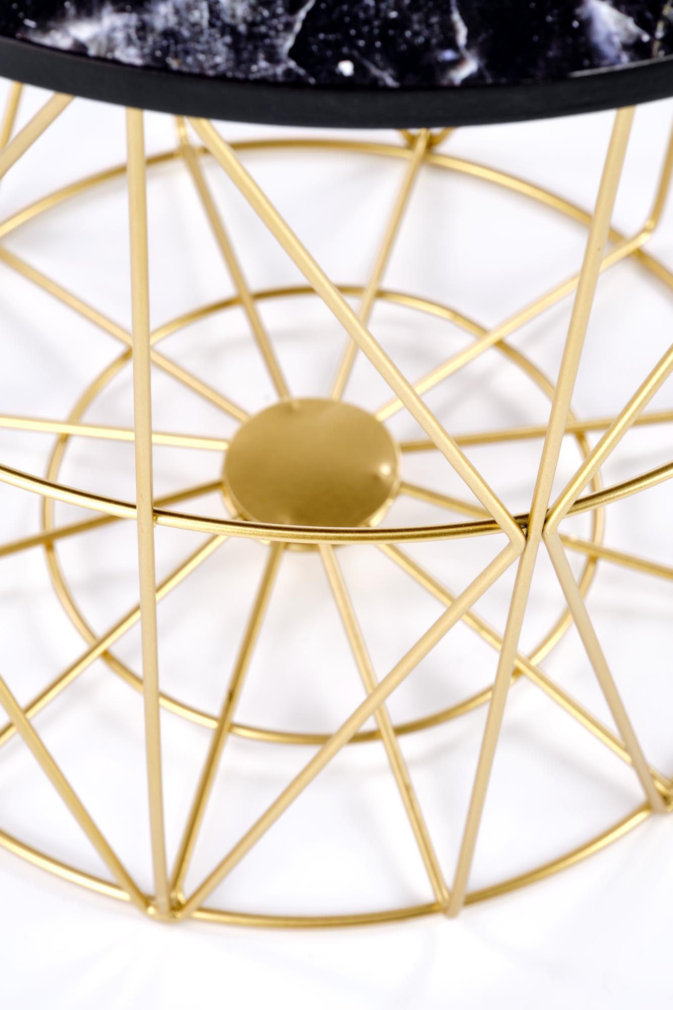 wymiary: fi 42/41 cm, materiał: MDF okleinowany / stal malowana proszkowo, kolory: stelaż – złoty, blat – czarny marmur