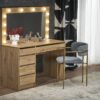 toaletka, wymiary: 120/55/140 cm, materiał: płyta meblowa okleinowana / oświetlenie LED, kolor: dąb artisan