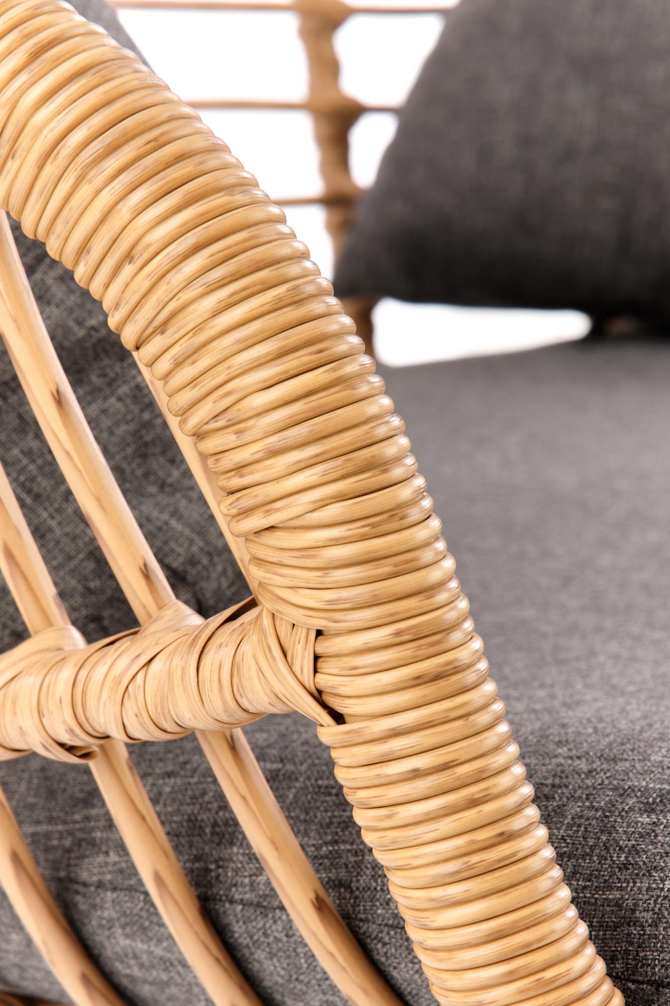wymiary: 96/120/70/45 cm, materiał: rattan syntetyczny / tkanina / stal malowana proszkowo: kolor: naturalny – popielaty