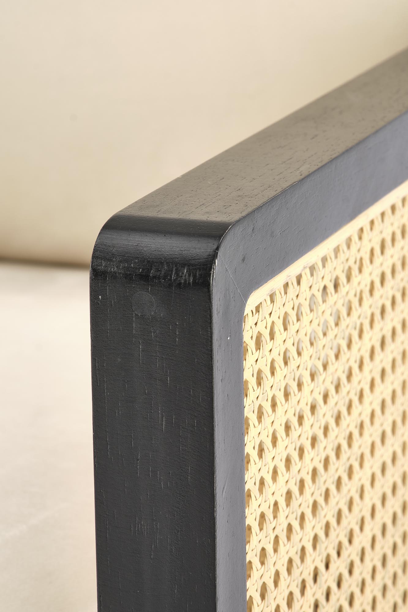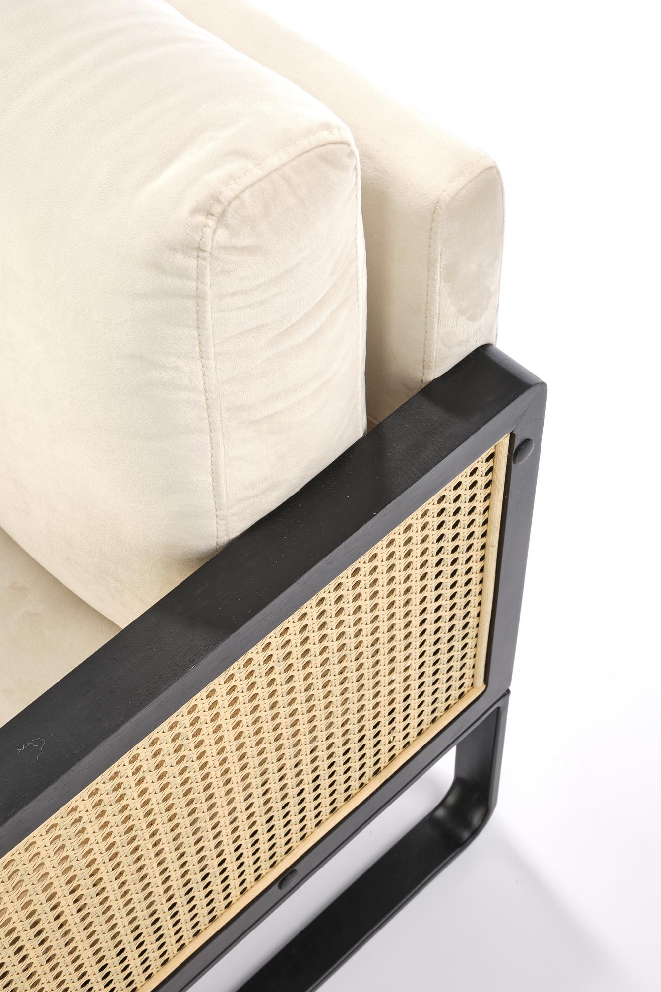 wymiary: 64/67/77/40 cm, materiał: tkanina – velvet / rattan syntetyczny / stal malowana proszkowo / drewno lite, kolor: czarny – naturalny – jasny beż