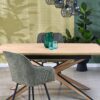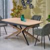 wymiary: 160-220/90/76 cm, stół rozkładany, materiał: MDF okleinowany – melamina / stal malowana proszkowo, kolor: blat – naturalny, nogi – czarny / naturalny