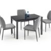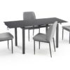 zestaw JASPER stół + 4 krzesła, wymiary: stół 110-170/70/76 cm, krzesło 44/58/89/47 cm, materiał: szkło / stal malowana proszkowo, kolor: czarny-popielaty