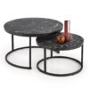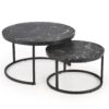 wymiary: 79/47 cm oraz 59/37 cm; zestaw 2 ław, materiał: MDF okleinowany / stal malowana proszkowo, kolory: czarny marmur / czarny