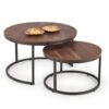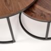 wymiary: 79/47 cm oraz 59/37 cm; zestaw 2 ław, materiał: MDF okleinowany / stal malowana proszkowo, kolory: orzechowy / czarny