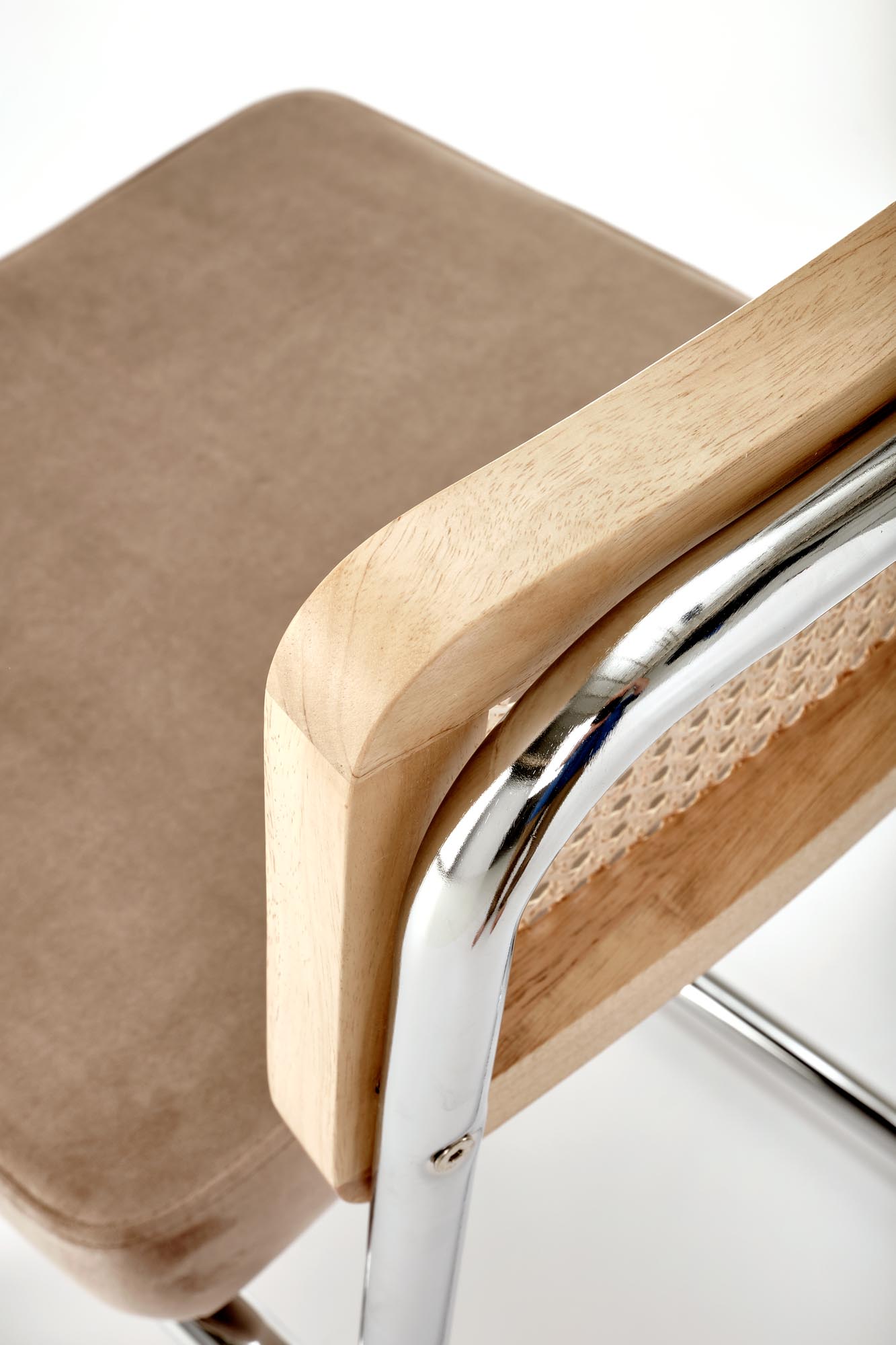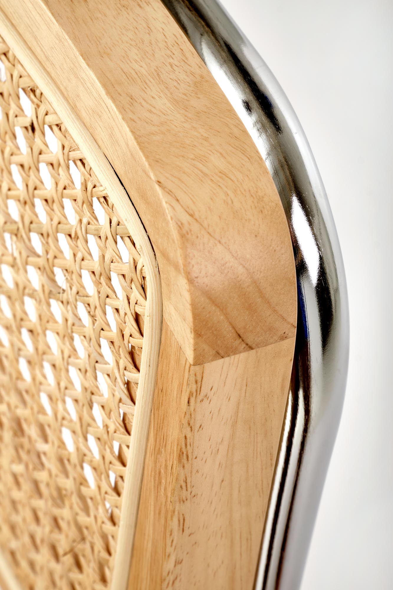 wymiary: 47/60/84/49 cm, materiał: drewno lite – kauczukowe / rattan naturalny / tkanina – velvet / stal chromowana, kolory: naturalny – beżowy – BLUVEL 40