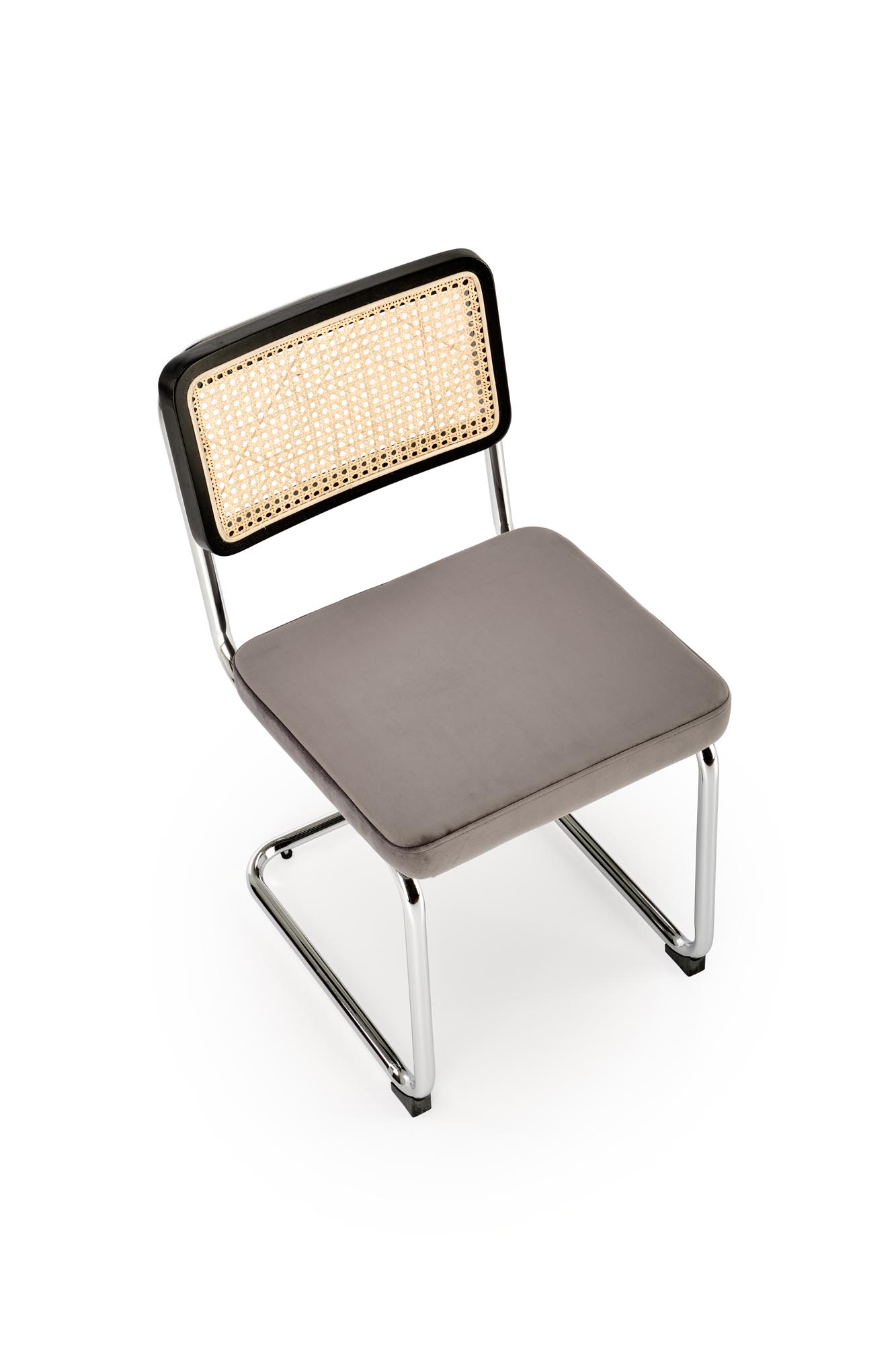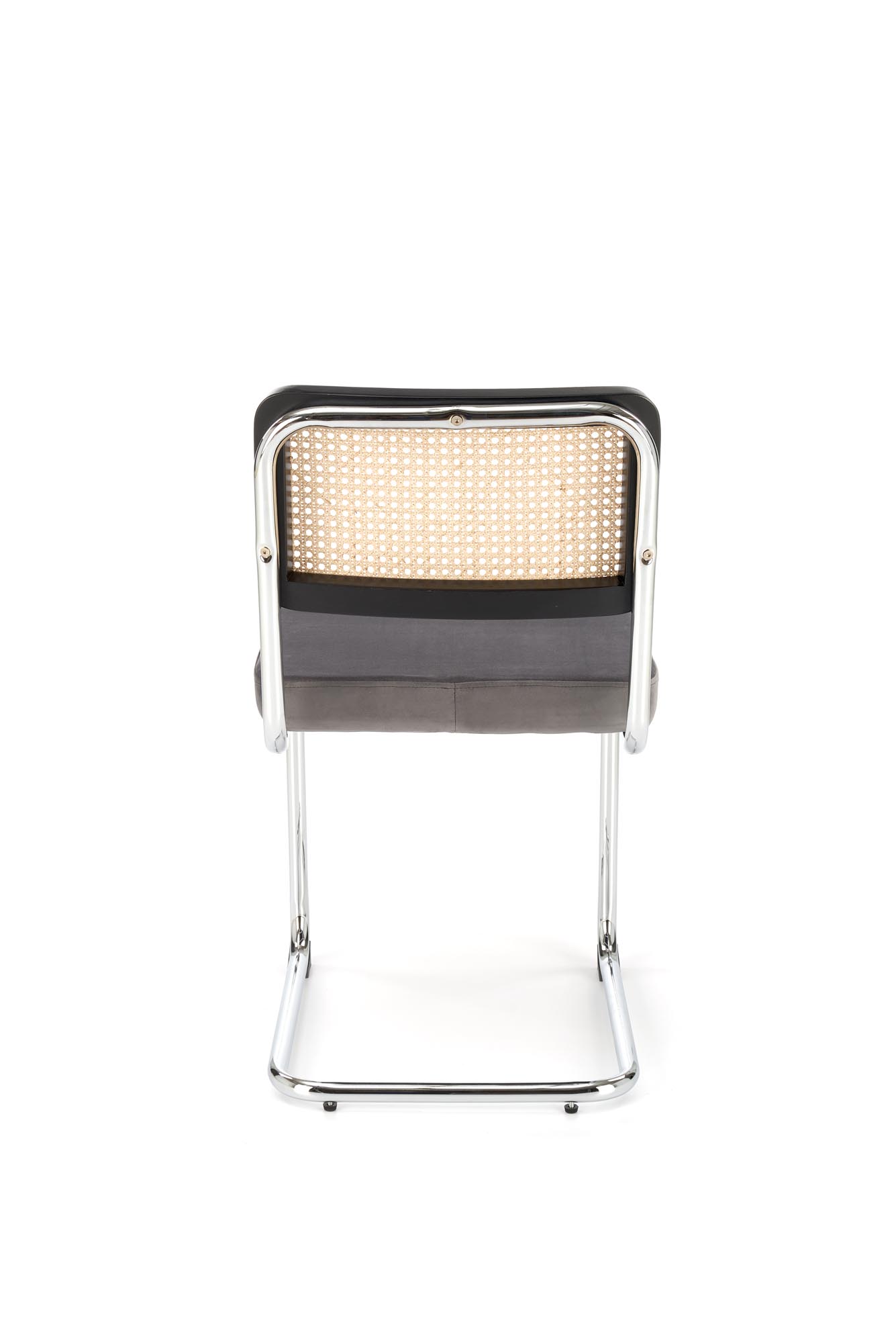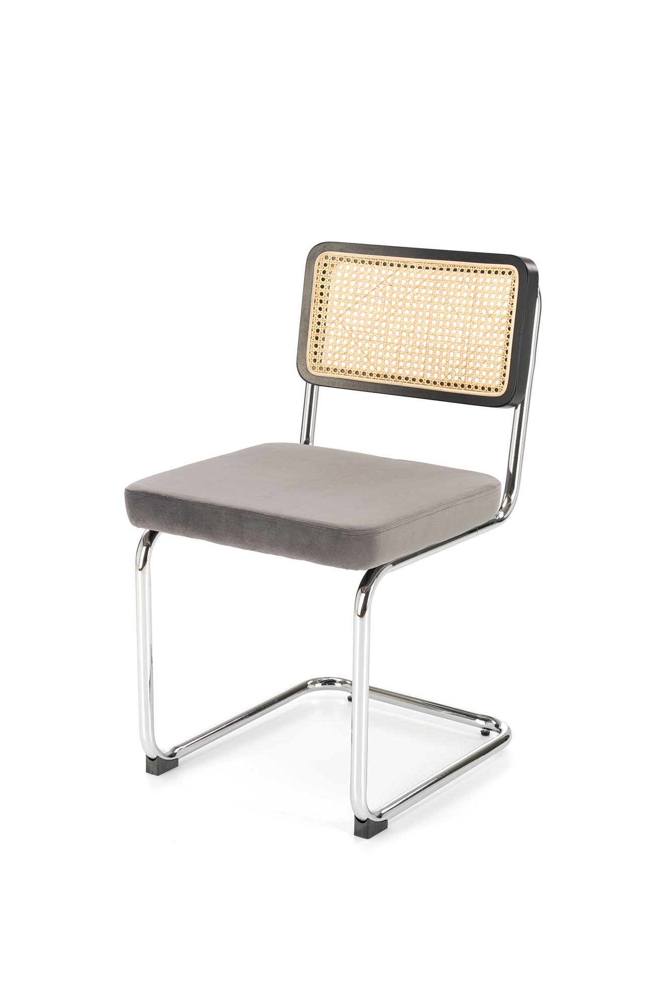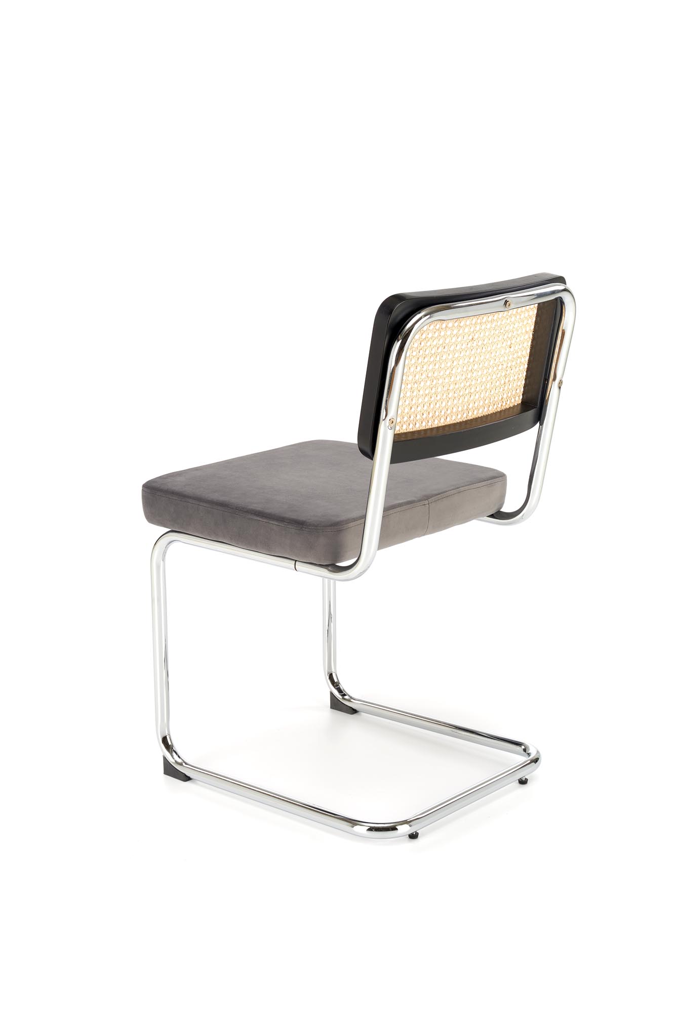 wymiary: 47/60/84/49 cm, materiał: drewno lite – kauczukowe / rattan naturalny / tkanina – velvet / stal chromowana, kolory: czarny / popielaty – BLUVEL 14