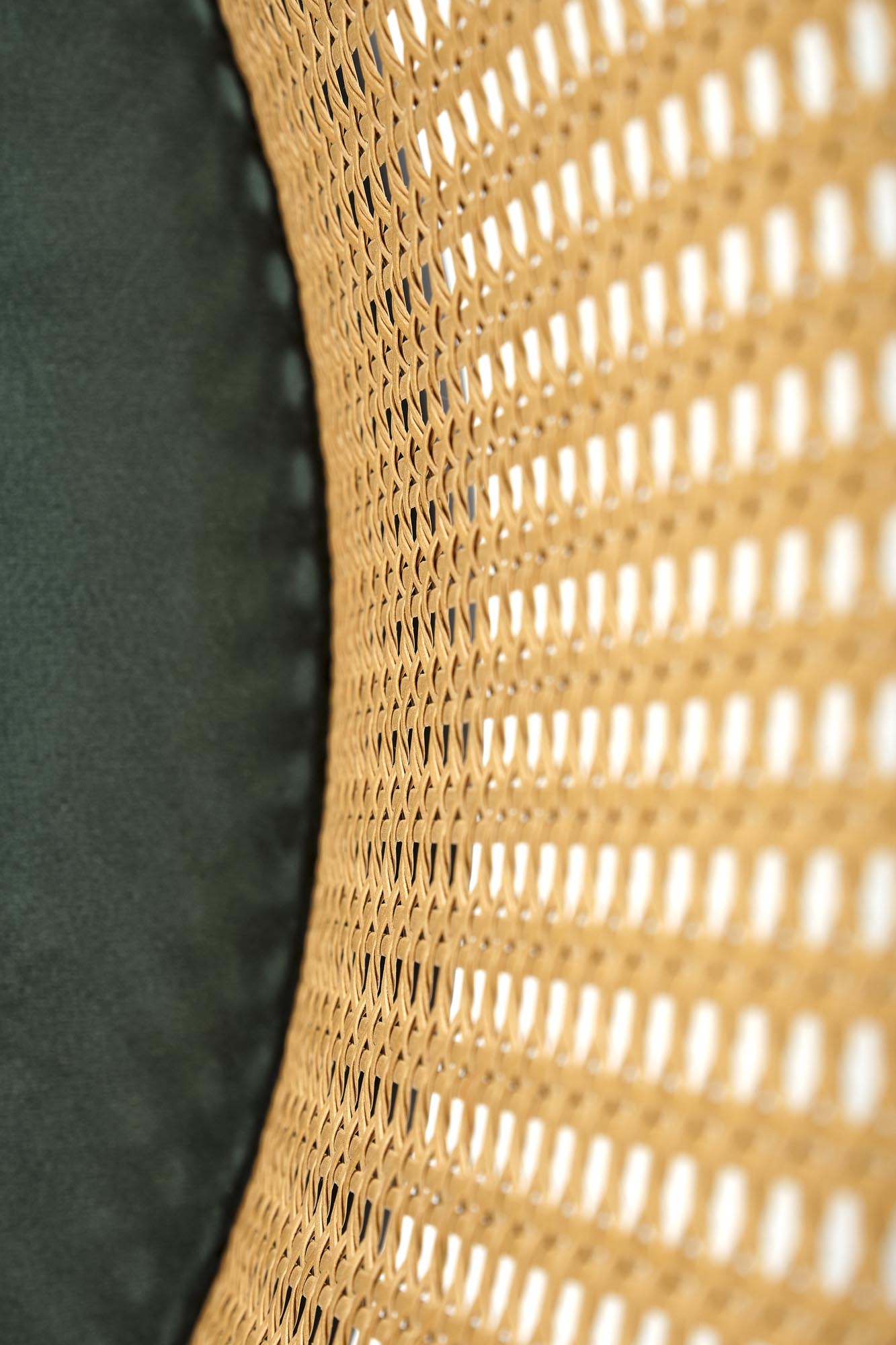 wymiary: 54/57/78/48 cm, materiał: tkanina – velvet / rattan syntetyczny / stal malowana proszkowo, kolor: ciemny zielony – BLUVEL 78