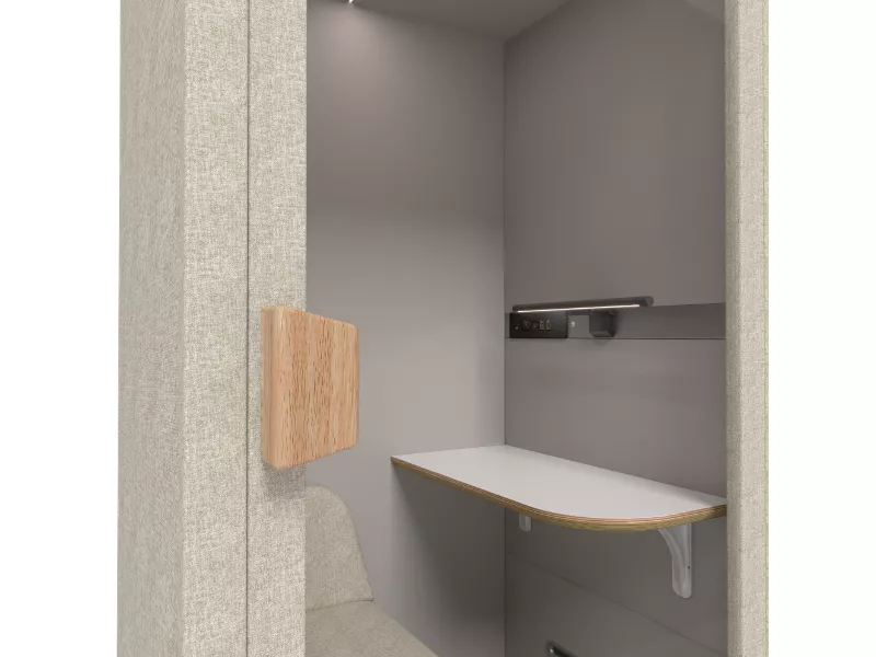Praktyczne biurko – na urządzenia komputerowe lub materiały biurowe potrzebne w trakcie użytkowania kabiny.