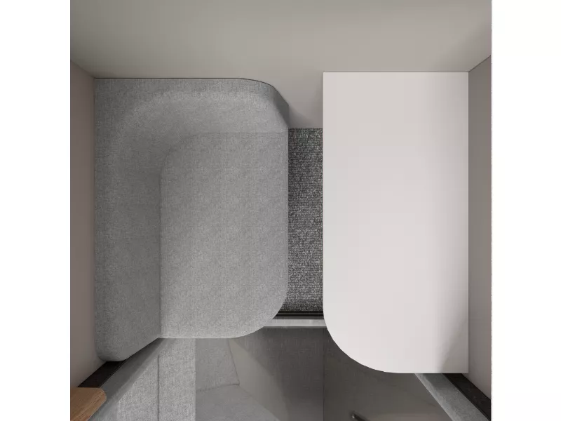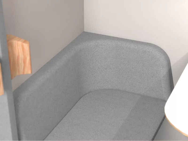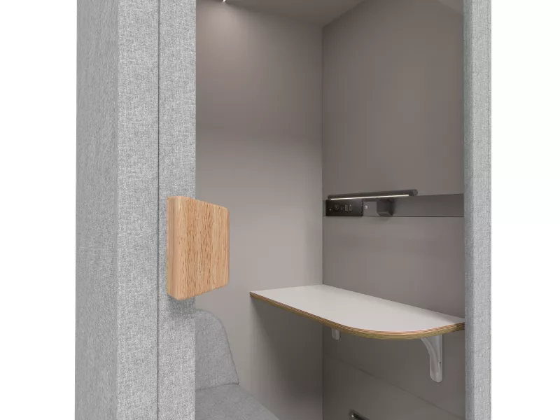 Regulowane praktyczne biurko – na urządzenia komputerowe lub materiały biurowe potrzebne w trakcie użytkowania kabiny.