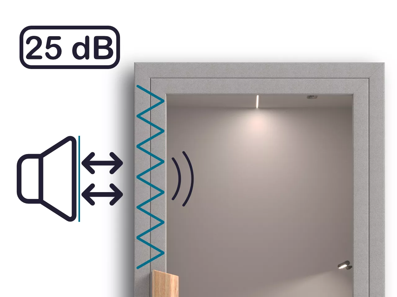 Izolacja akustyczna i redukcja hałasu około 25 dB ± 5 dB.
