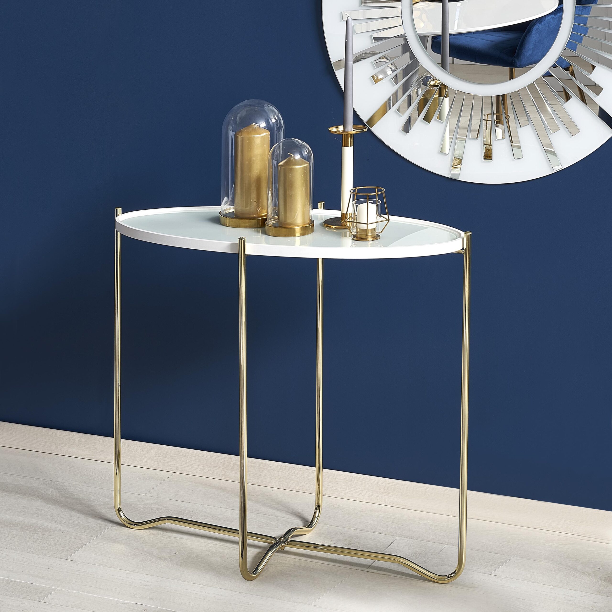 wymiary: 83/38/74 cm, materiał: szkło / MDF lakierowany / stal chromowna, kolor: biały – złoty