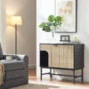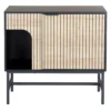 Komoda, blat: płyta laminowana, stelaż: metal, kolor: dąb + czarnt mat / czarny. Wysokość nóżek 32cm.