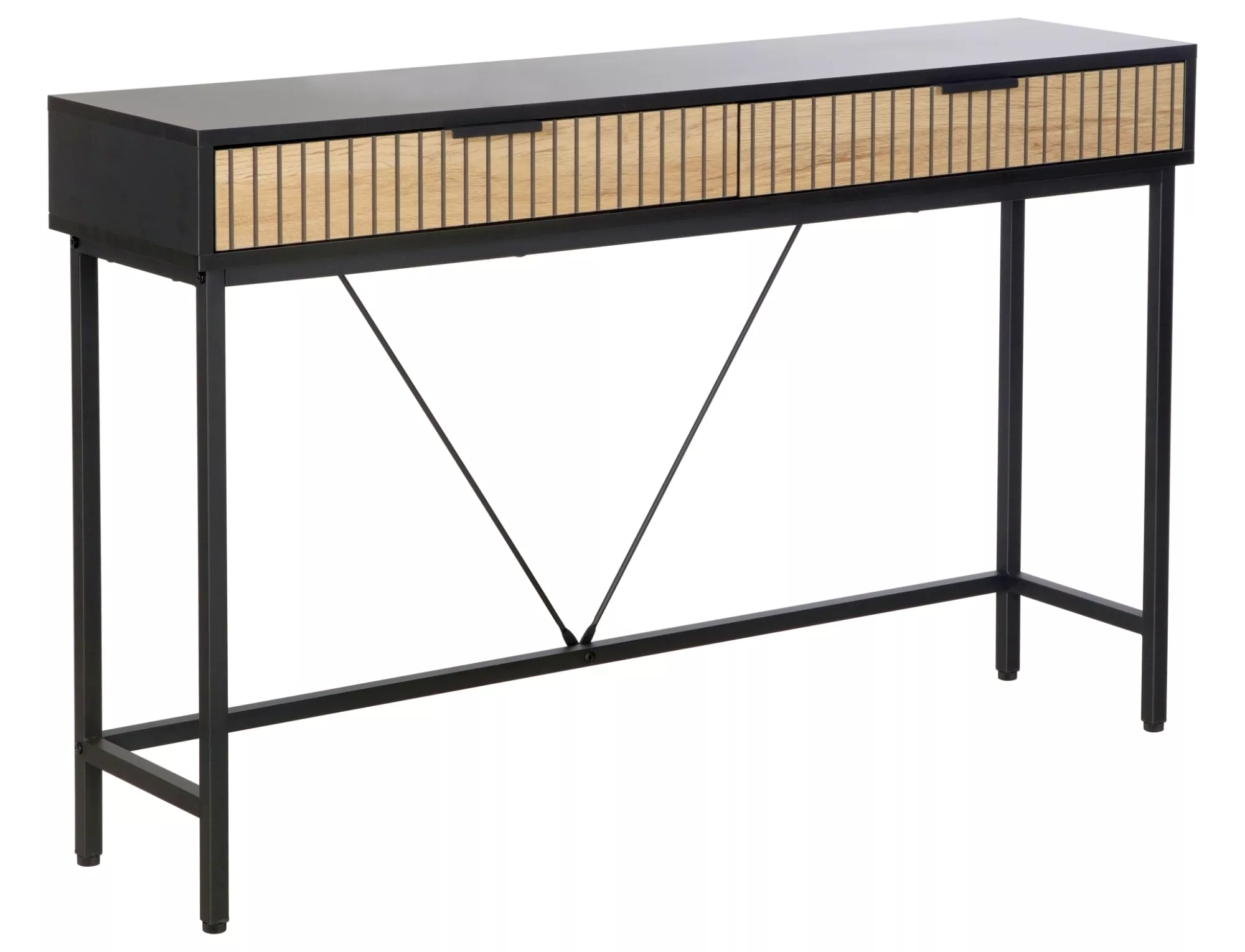 Konsola, blat: płyta laminowana, stelaż: metal, kolor: dąb + czarnt mat / czarny.