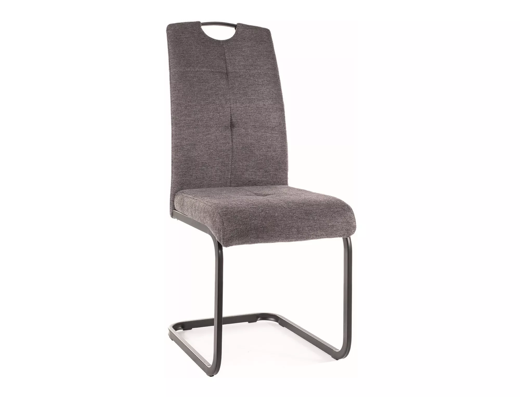 Krzesło, tkanina Brego, kolor: ciemny szary 18 / metal, czarny mat. Na szczycie oparcia praktyczny uchwyt ułatwiający przesuwanie krzesła.