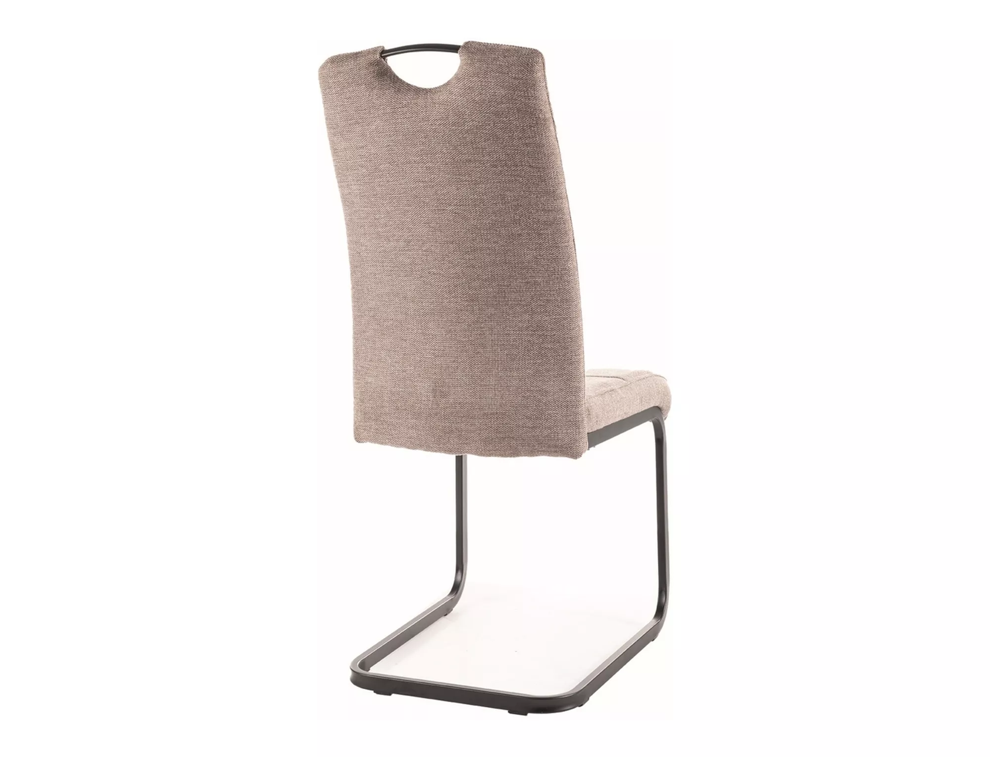 Krzesło, tkanina Brego, kolor: beż 34 / metal, czarny mat. Na szczycie oparcia praktyczny uchwyt ułatwiający przesuwanie krzesła.