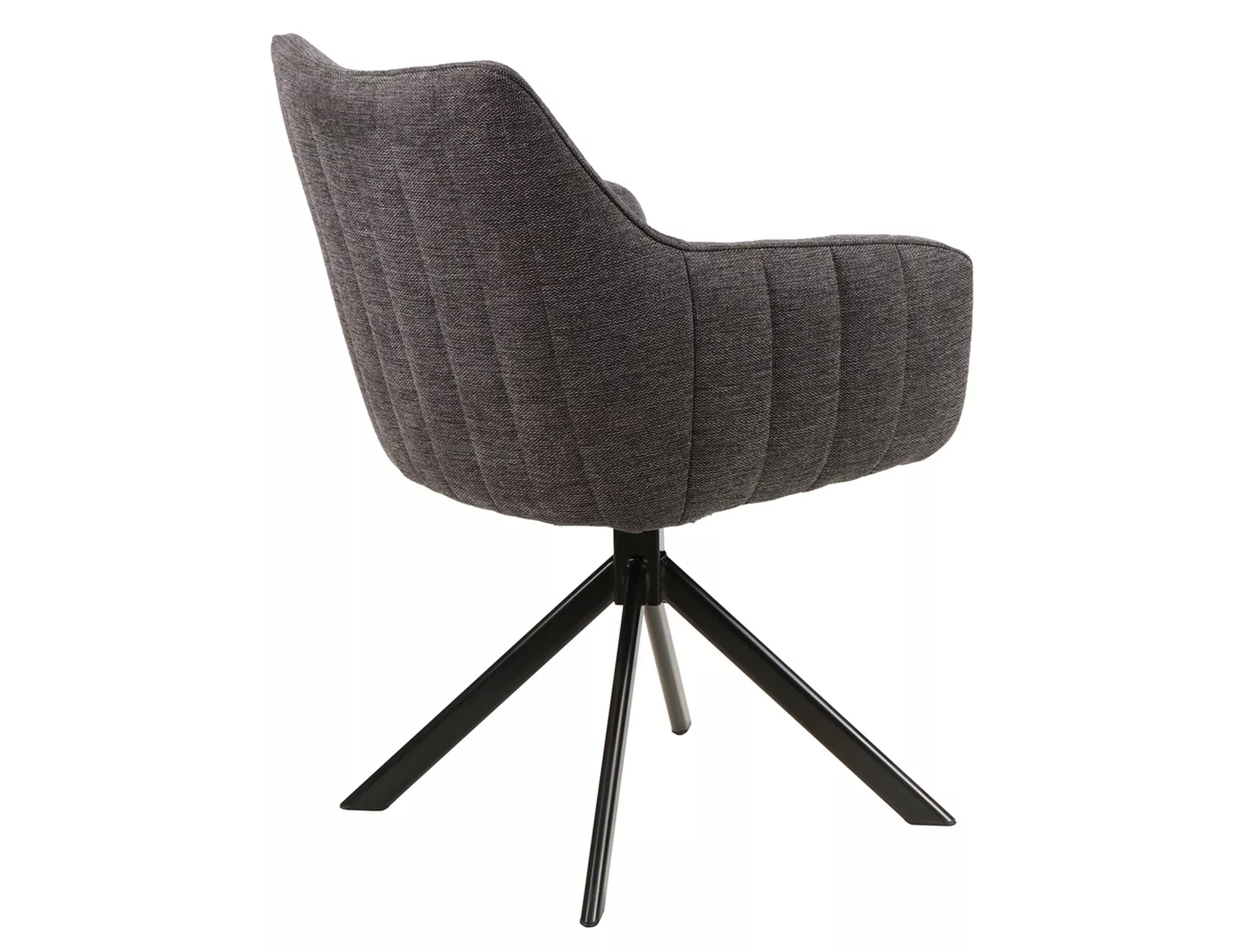 Krzesło, tkanina Brego, kolor: ciemny szary 18, stelaż: metal, czarny mat. Siedzisko obracane w zakresie 180st, z funkcją powrotu do pierwotnej pozycji.