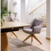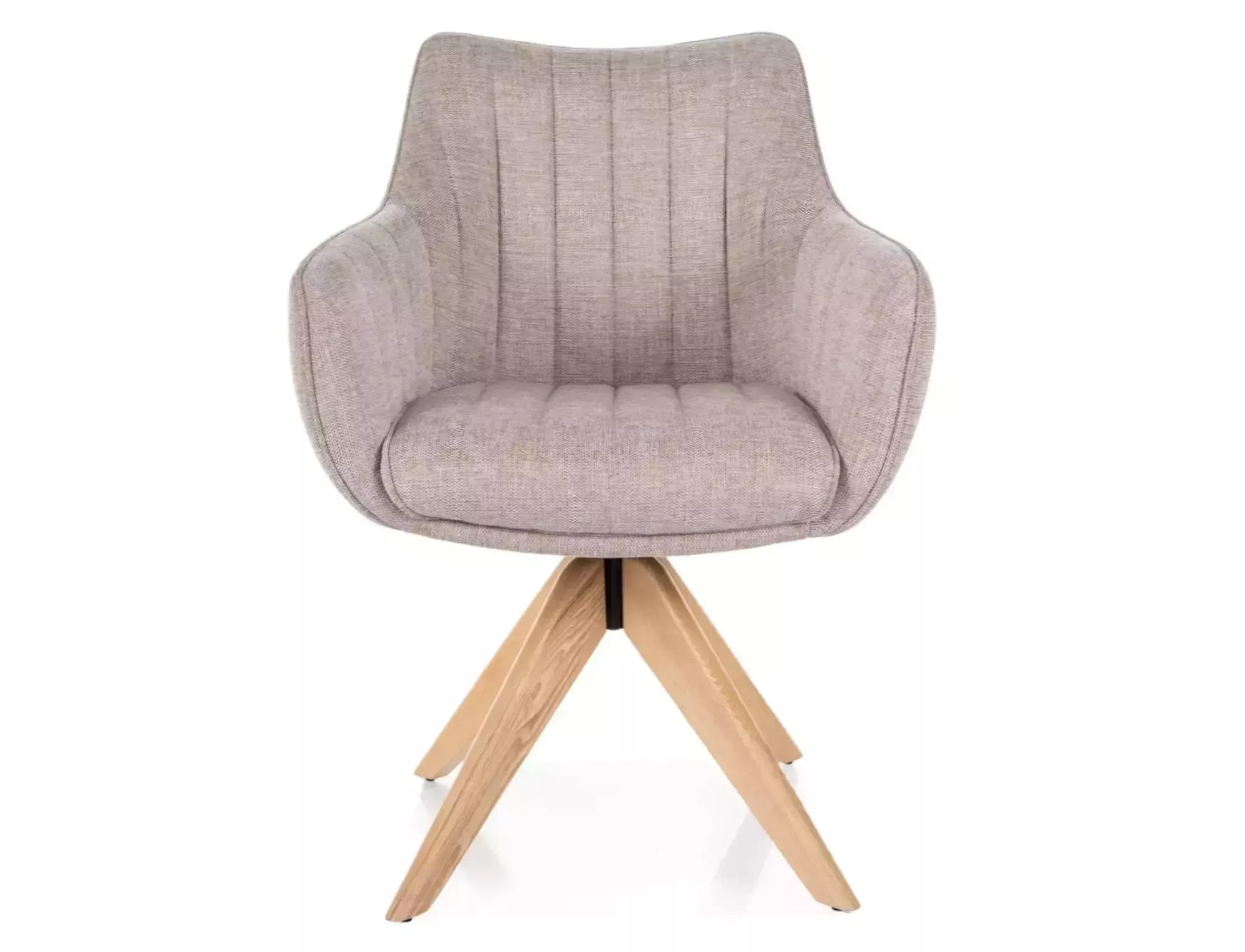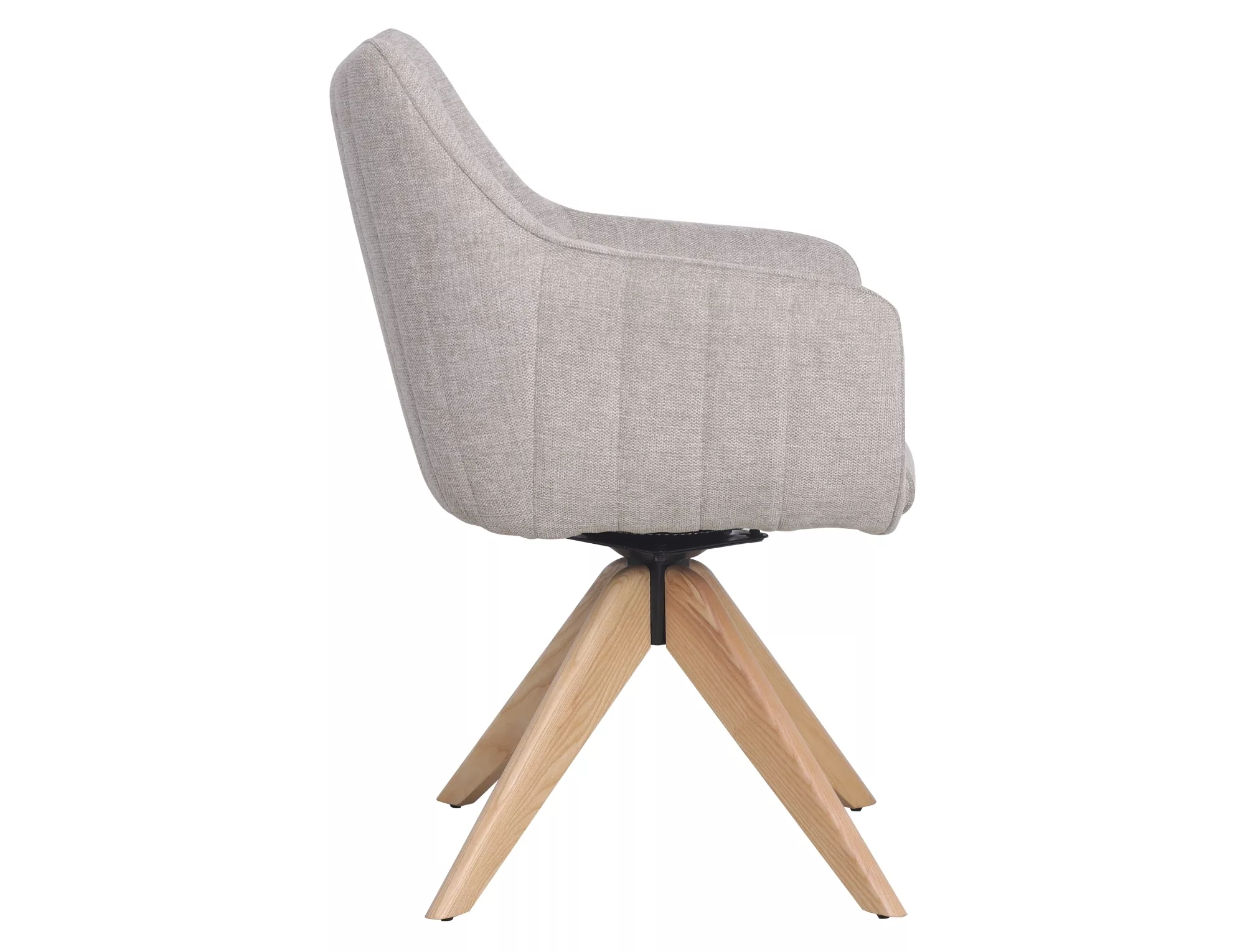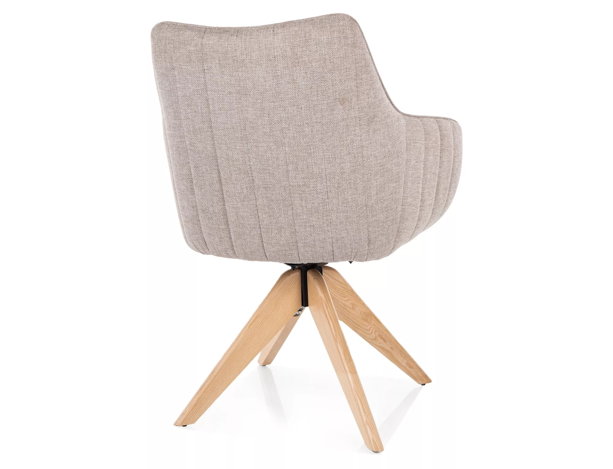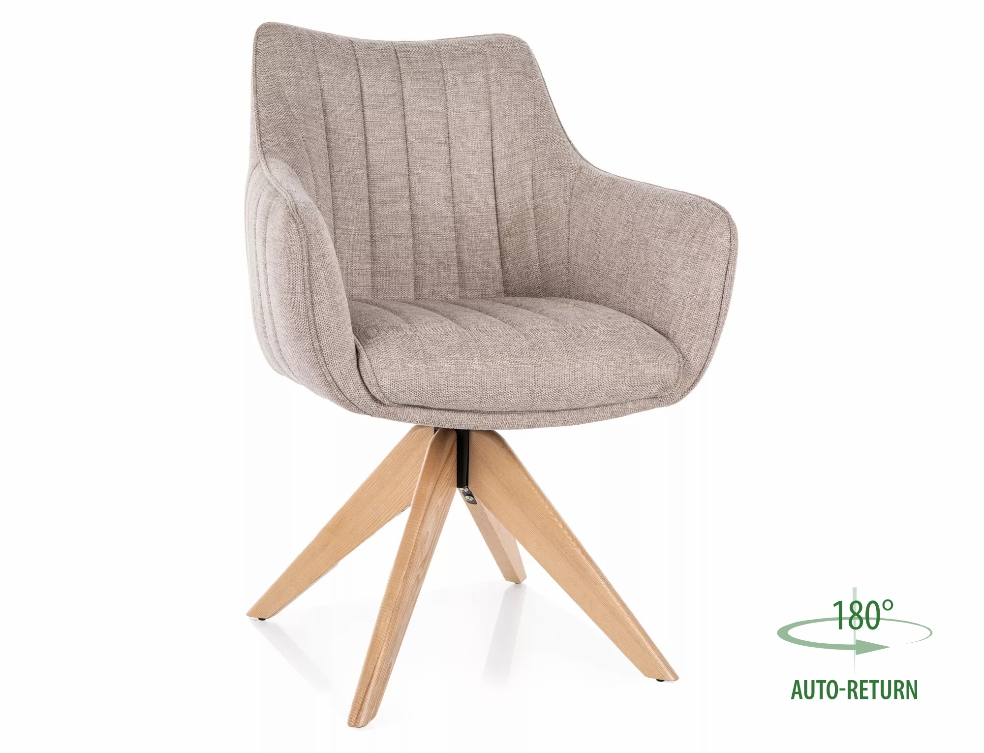Krzesło, tapicerka: tkanina Brego 31, stelaż: drewno jesion, kolor: jasny beżowy / dąb.Funkcja auto-return – siedzisko obracane w zakresie 180st, z funkcją powrotu do pierwotnej pozycji.