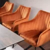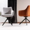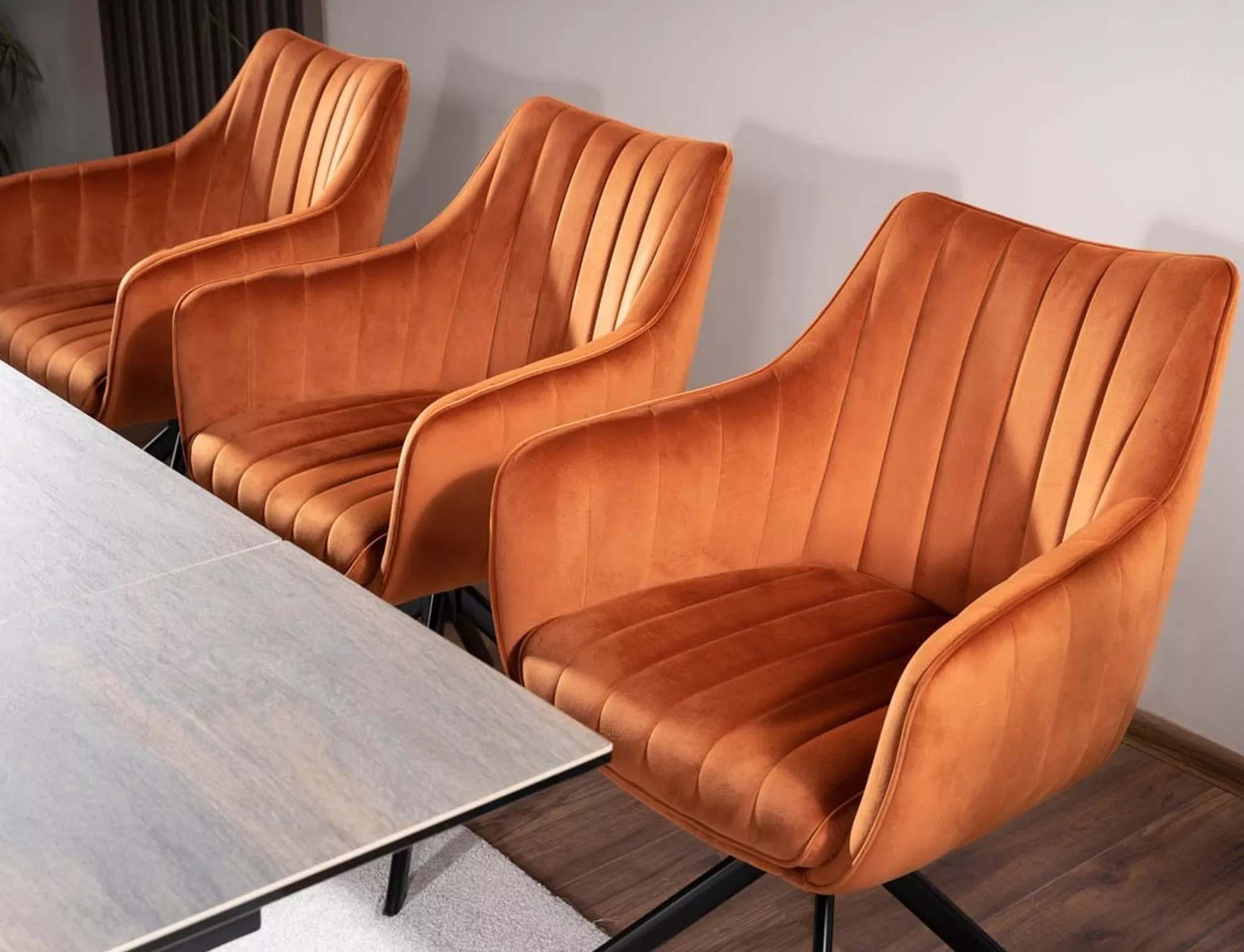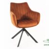 Krzesło, tkanina aksamit: Bluvel 4215 – cynamonowy, stelaż: metal, kolor: czarny mat. Siedzisko obracane w zakresie 180 stopni, z funkcją powrotu do pozycji wyjściowej.