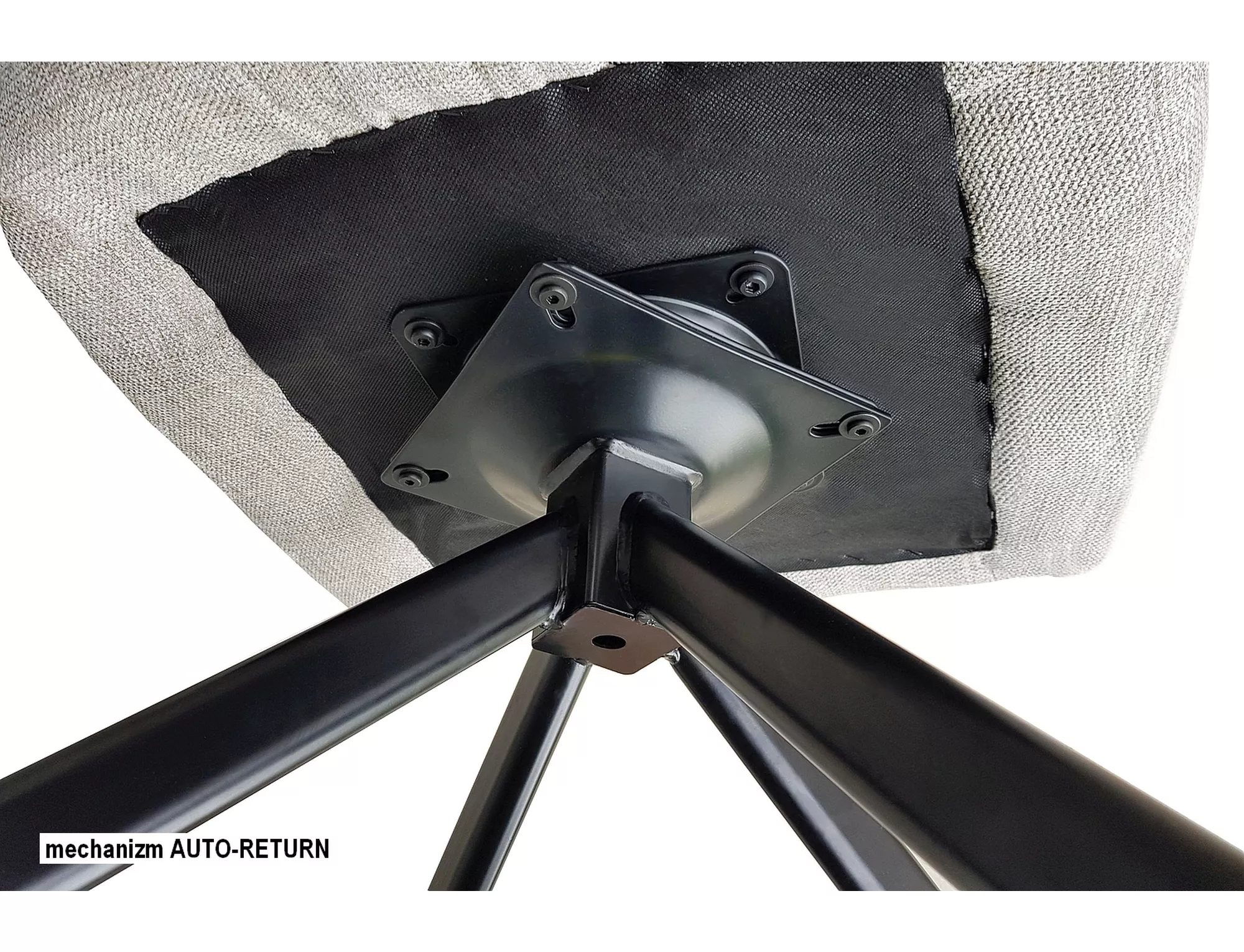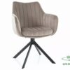 Krzesło, tapicerka: tkanina aksamit Bluvel, stelaż: metal, kolor: 40 ciemny beżowy / czarny mat. Funkcja auto-return – siedzisko obracane w zakresie 180st, z funkcją powrotu do pierwotnej pozycji.