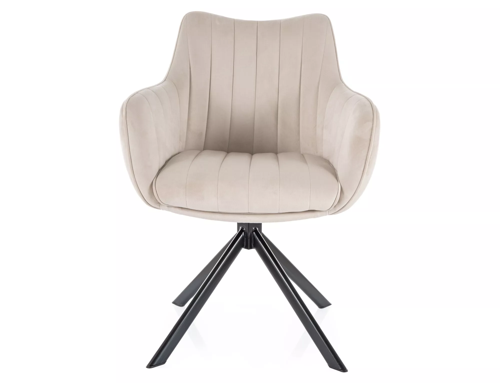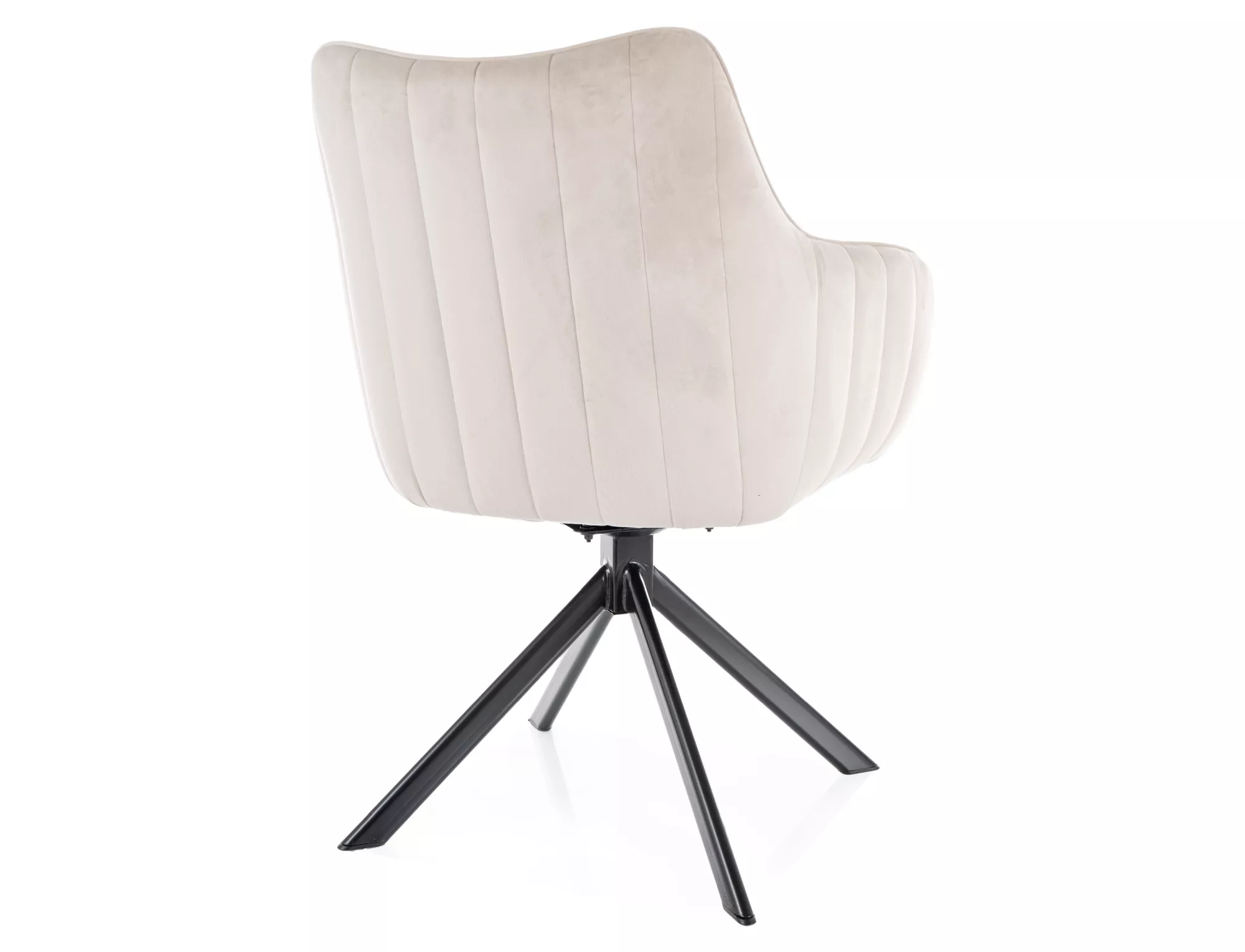 Krzesło, tapicerka: tkanina aksamit: Bluvel 30, stelaż: metal, kolor: jasny beżowy / czarny mat.Funkcja auto-return – siedzisko obracane w zakresie 180st, z funkcją powrotu do pierwotnej pozycji.