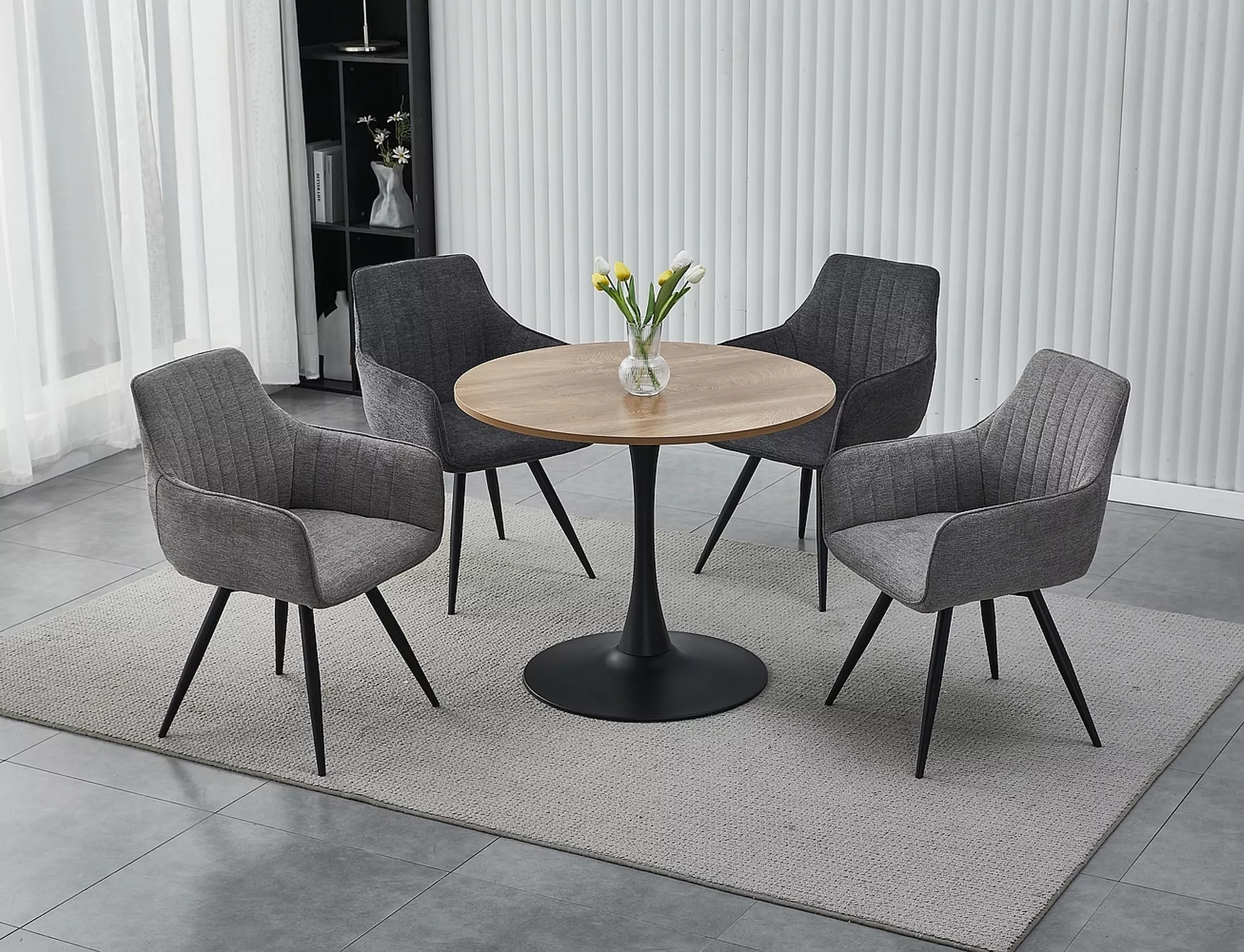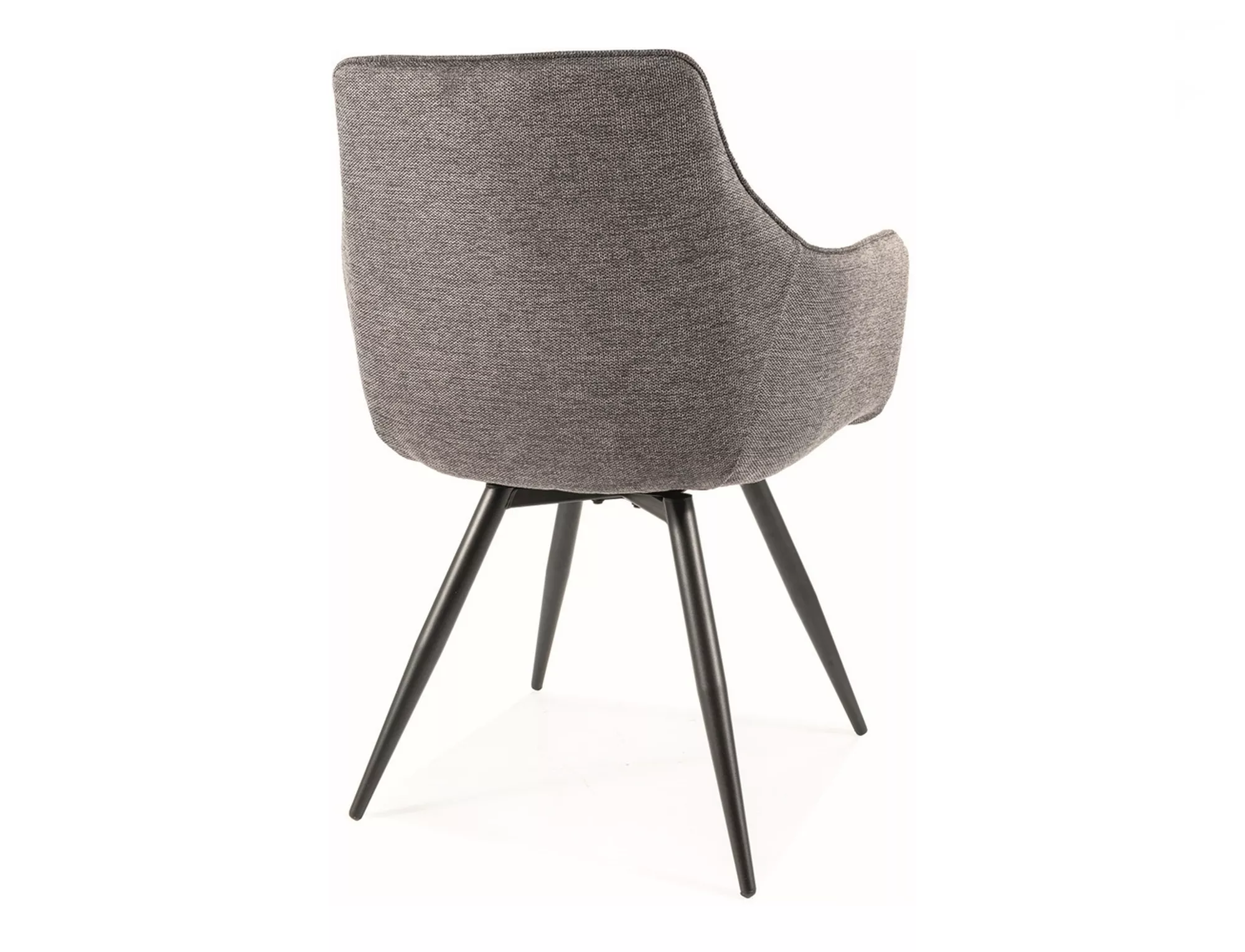 Krzesło, tkanina Brego, kolor: ciemny szary 18, stelaż: metal, czarny mat. Siedzisko obracane w zakresie 180st, z funkcją powrotu do pierwotnej pozycji.