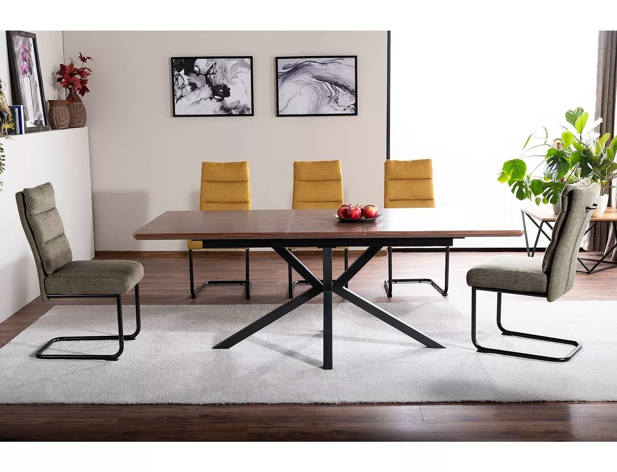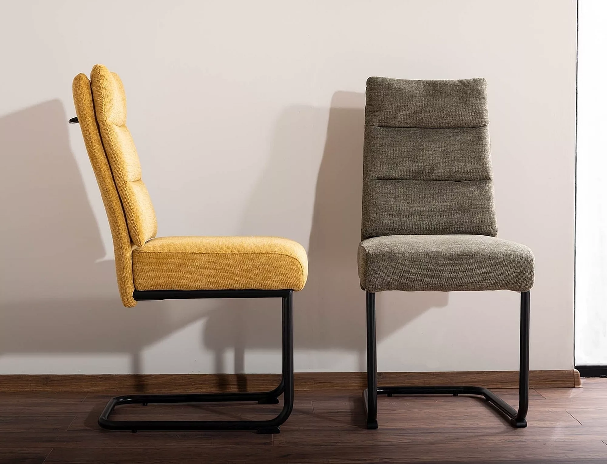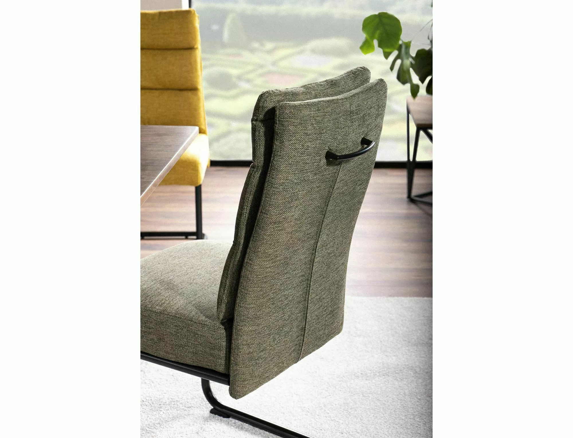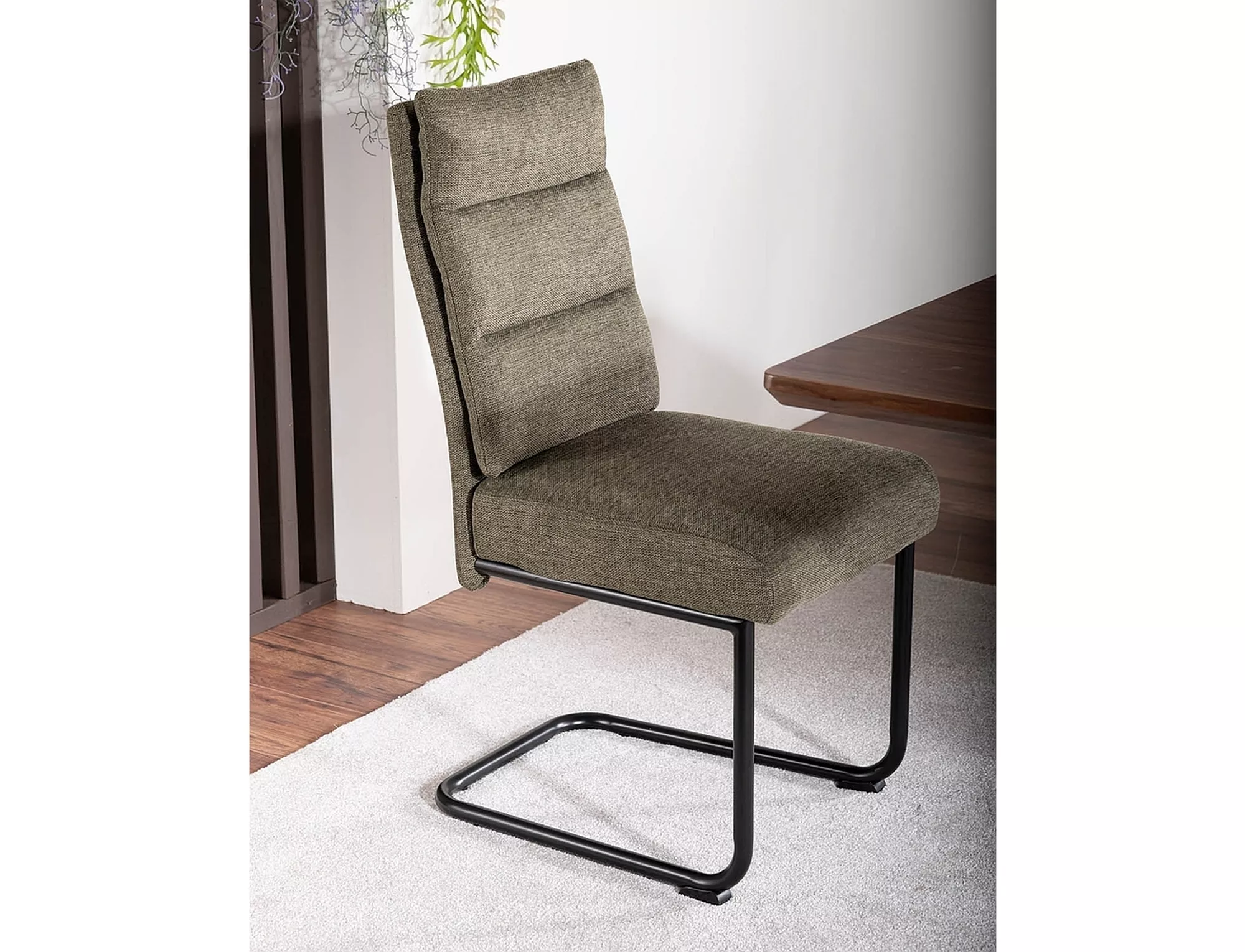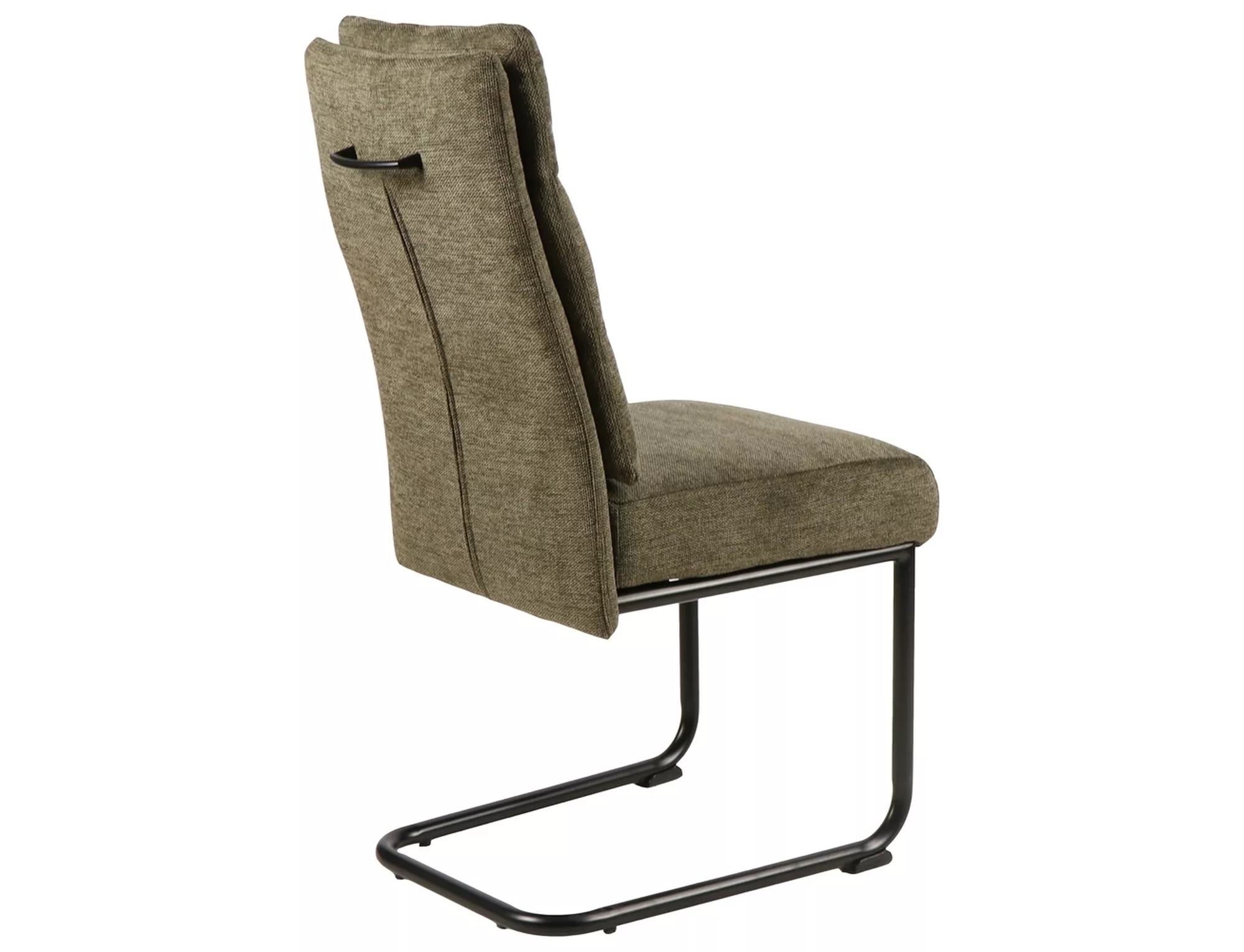 Krzesło, tkanina Brego, kolor: oliwka 77 / metal, czarny mat. Na tyle oparcia praktyczna rączka ułatwiająca przesuwanie krzesła.